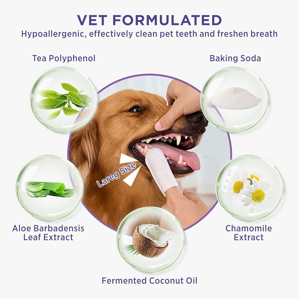 دعم صحة الفم للحيوانات الأليفة. امسح أسنان ولثة كلبك بسهولة وسرعة بعد الرضاعة وأثناء السفر، للمساعدة في منع وإنشاء روتين صحي للعناية بأسنان الحيوانات الأليفة. استخدميه يوميًا لمساعدة حيوانك الأليف في الحصول على ابتسامة أكثر نظافة ونضارة.