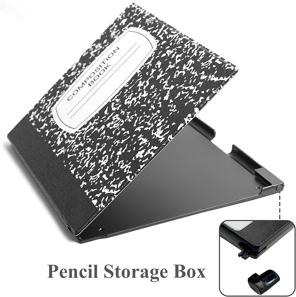 【User-friendly Experience】The built-in pen holder with its own magnetic attachment is simple and convenient, keep your pen not to lose, and it has a small handy refill storage case. The case also can flips freely when in use, overall gives friendly user experience.