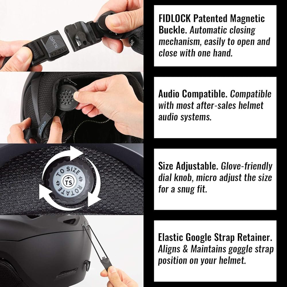 Revolutionary Magnetic Buckle. Helmet equipped with a revolutionary FIDLOCK patented Magnetic Buckle, which has an automatic closing mechanism. It can be easily opened or closed with one hand even with your gloves on.