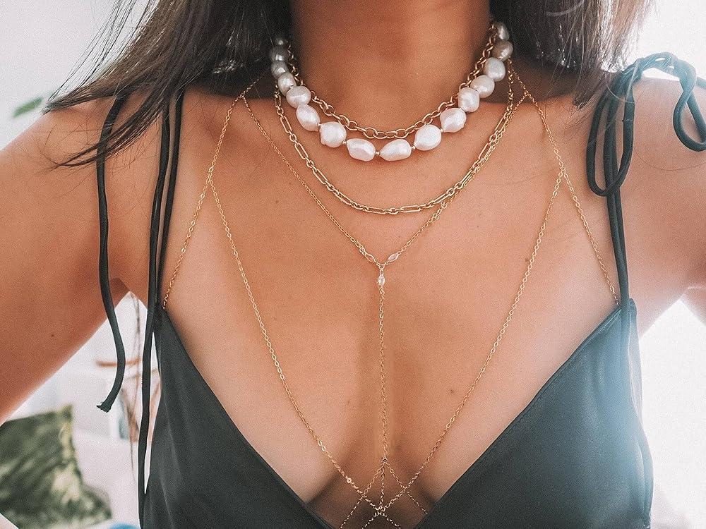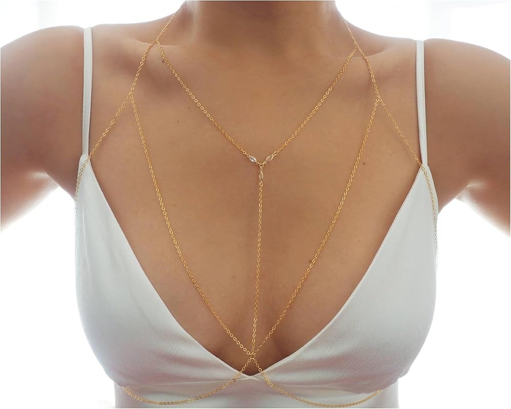 سلسلة جسم أنيقة على شكل حرف T مع كريستال، سلسلة علوية من سلسلة براليت، مجوهرات للجسم بيكيني للنساء