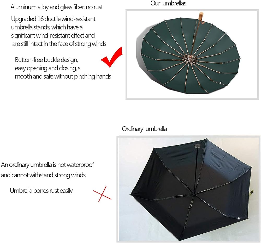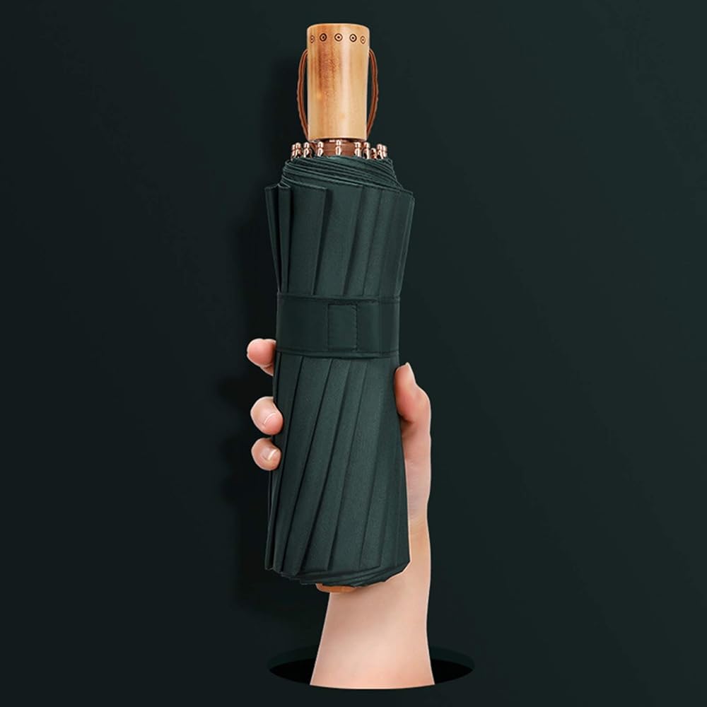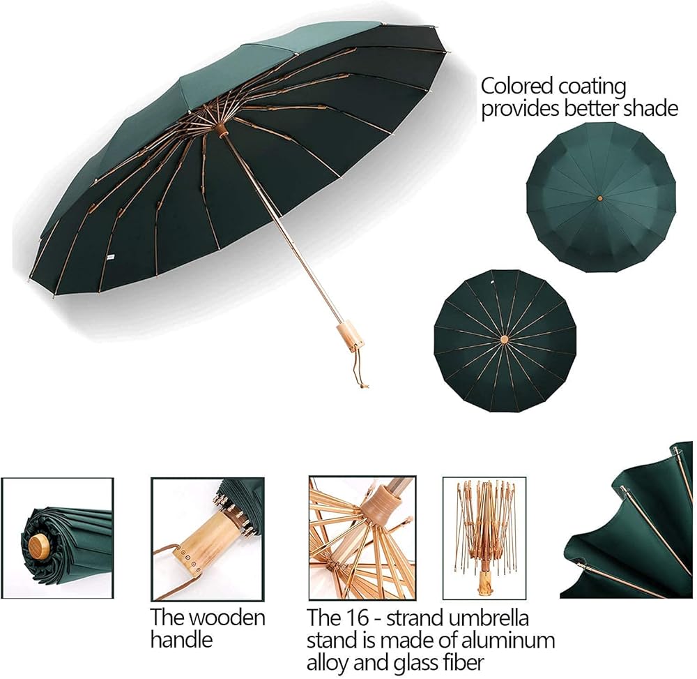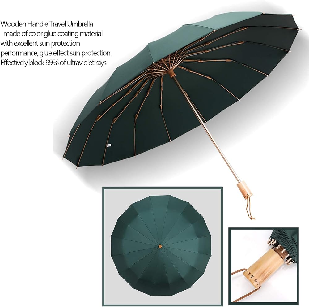 صنع الحرفيون مظلة سفر مقاومة للرياح، مظلة صغيرة قابلة للطي، مقبض خشبي، مظلة مدمجة ومحمولة مضادة للصدأ مع 16 ضلع من الألياف الزجاجية والألمنيوم، خفيفة الوزن مع أقراص جل ملونة مضادة للأشعة فوق البنفسجية