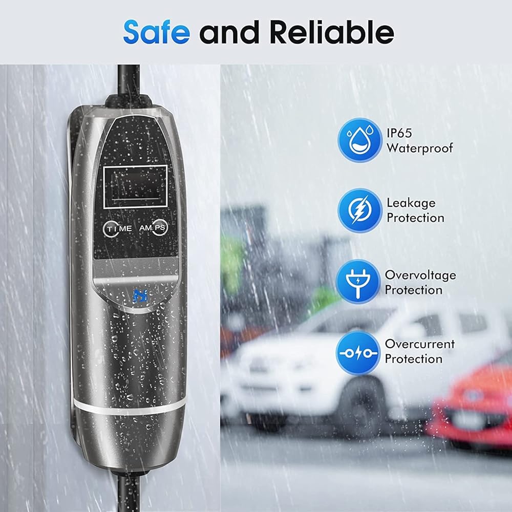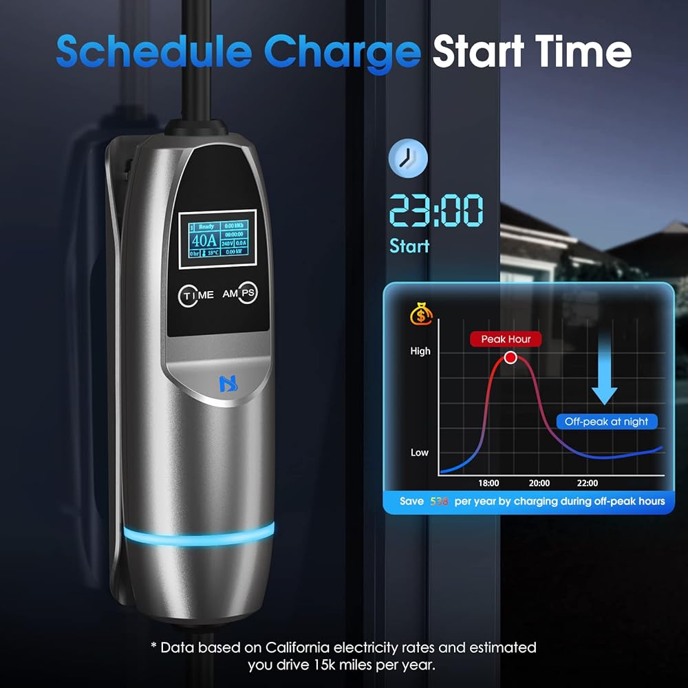 [الشحن في أي وقت وفي أي مكان] يتيح لك شاحن EV الخاص بنا الاستفادة من أسعار الكهرباء المنخفضة في غير ساعات الذروة. قم بجدولة وقت بدء الشحن وتوفير المال أثناء النوم. يتميز الكابل الذي يبلغ طوله 16.4 قدمًا بالمرونة الكافية لمعظم الأفنية أو المرائب. التصميم المحمول يجعله مناسبًا بسهولة في صندوق سيارتك وإعادة شحن سيارتك في أي مكان. قم باستثمار لمرة واحدة في شاحن سيارة كهربائية محمول للمنزل لضمان توفير الطاقة لسنوات قادمة.