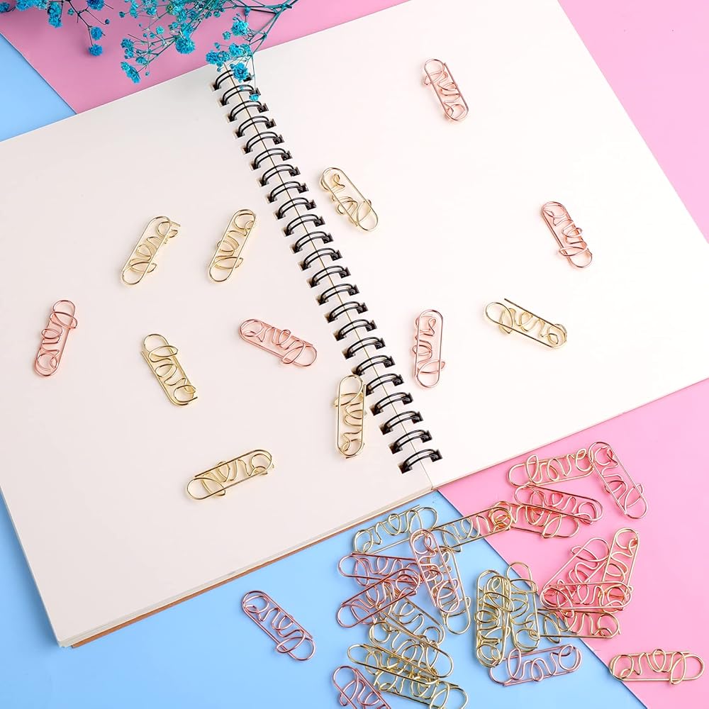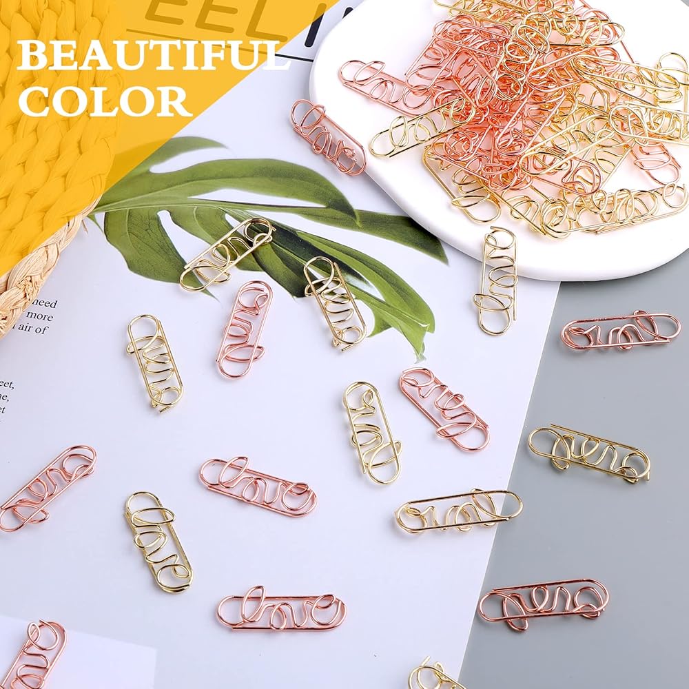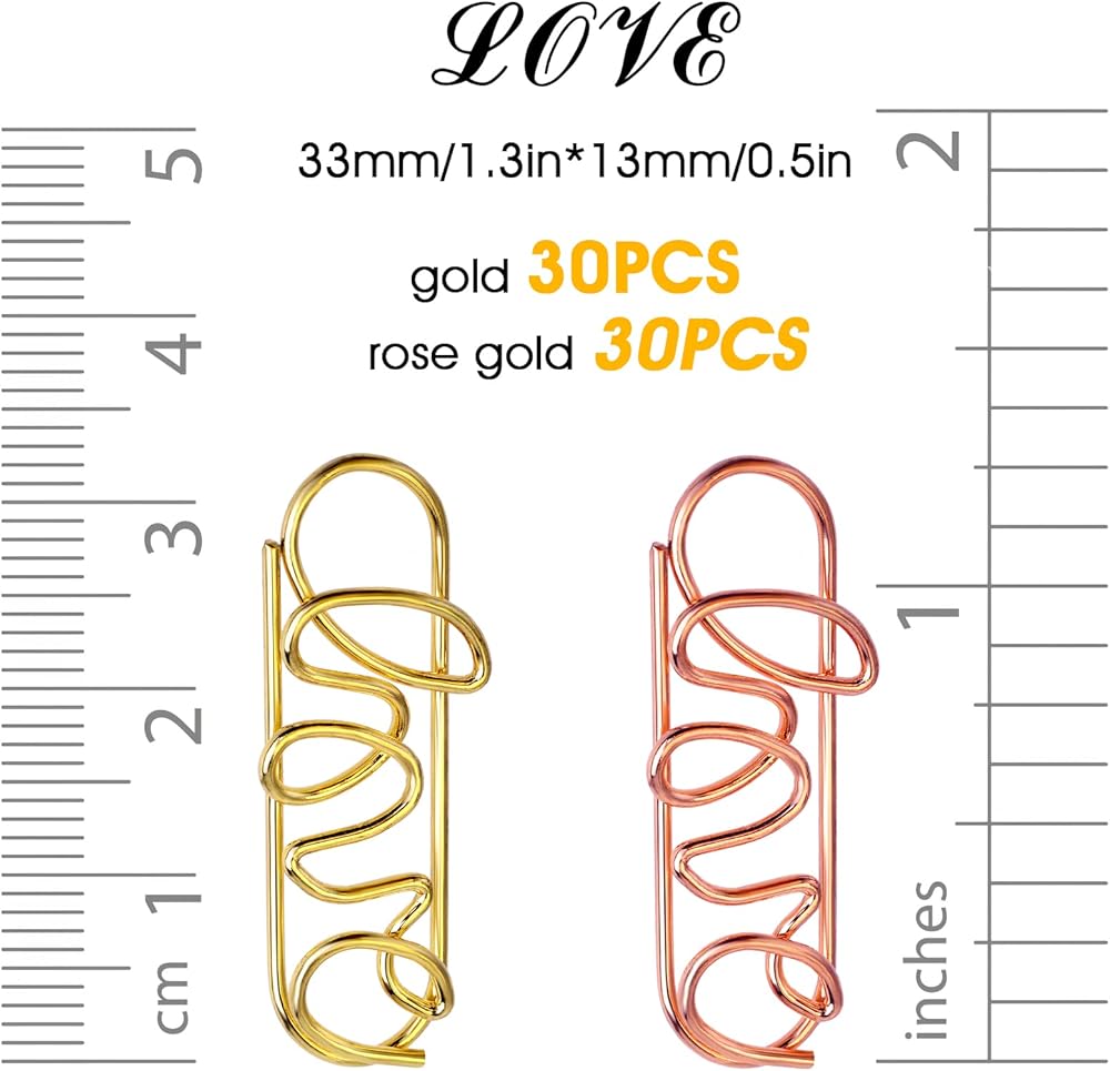 30pcs gold paper clips+30pcs rose gold love paperclips