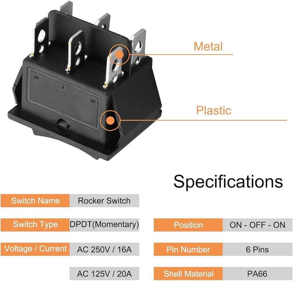✅[Feature]: Rocker switch is momentary meaning it springs back to the center off position when the toggle is released. The switch will reset automatic back to off if released.
