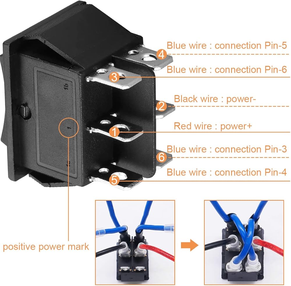 ✅[Easy To Use]: When the red wire is connected to the positive pole of the power supply and the black wire is connected to the negative pole of the power supply, and the blue wire is connected to the motor, the DC motor will reverse the motor direction through the switch. It is configured for polarity reversal. Simply connect power and ground and the two DC motor leads and the switch will reverse the motor direction.