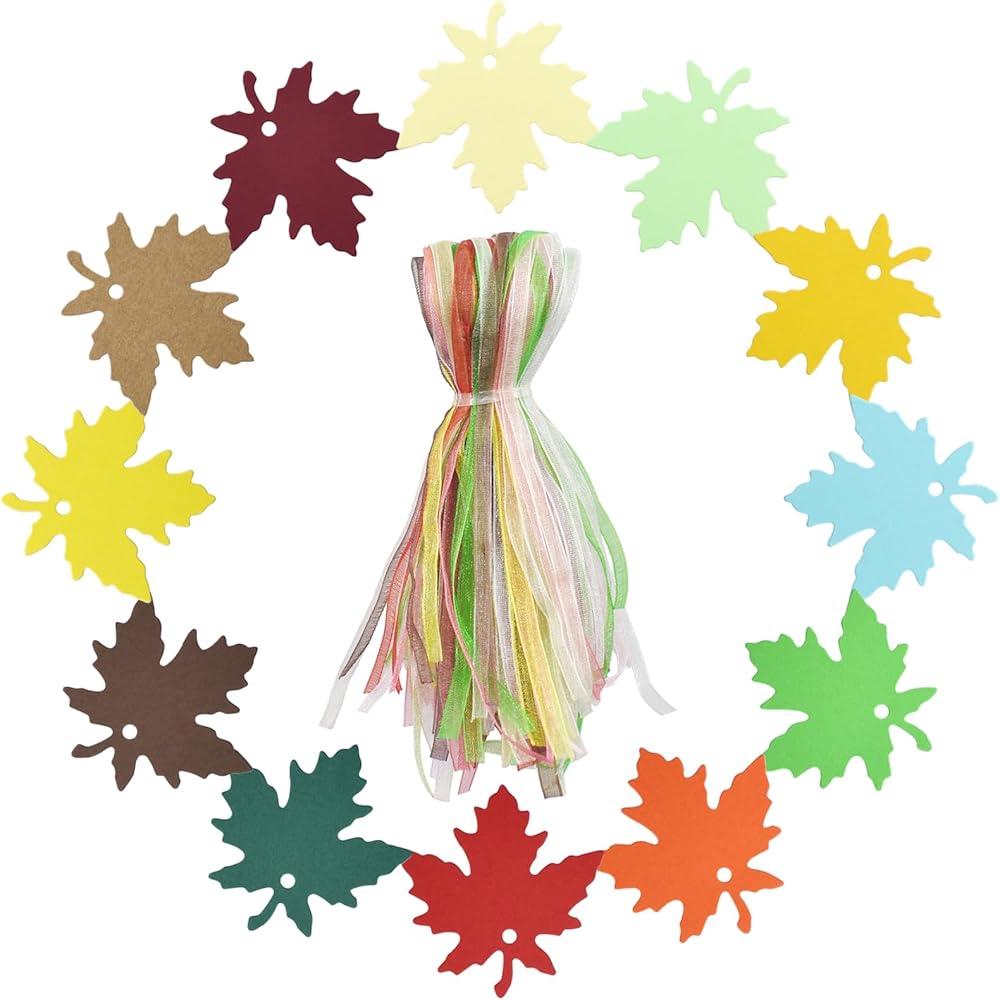 SHRJ 200Pcs Gift Hang Tags Cards with Organza Ribbon Twine Strings Present Wrapping Tags for Christmas, New Year, Thanksgiving, Baby Shower, Holiday, Wedding Party