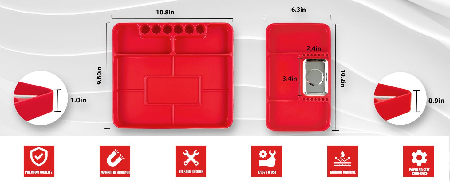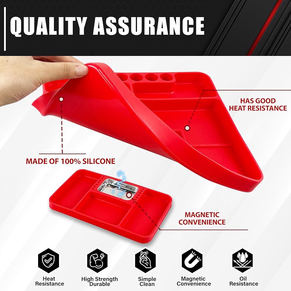 【تصميم مغناطيسي】تحتوي صينية الأدوات المصنوعة من السيليكون الفاخر على حصيرة تنظيم مغناطيسية قابلة للإزالة مصممة لحمل الأجزاء المعدنية الصغيرة، مما يمنع فقدانها ويجعل إصلاحاتك الميكانيكية أكثر كفاءة.
