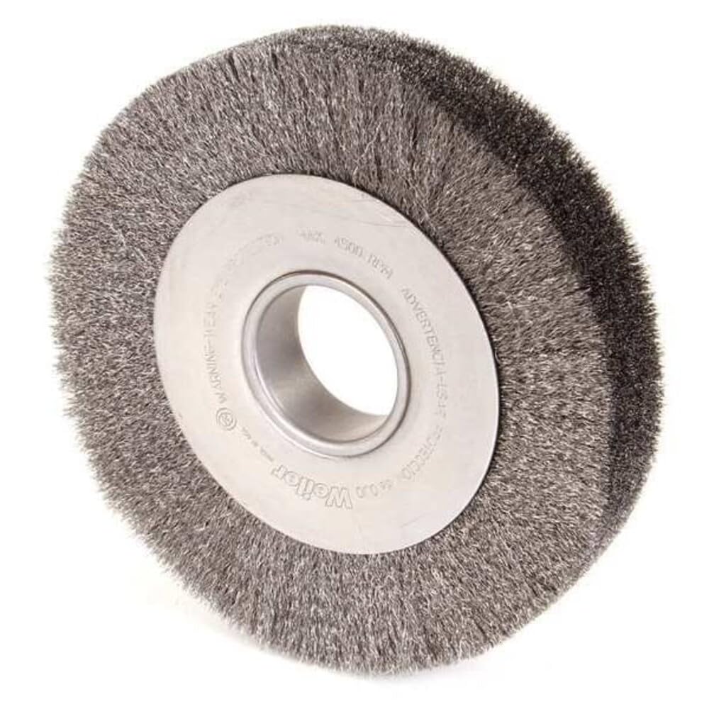 Weiler 8" Wide Face Crimped Wire Wheel provide a flexible brushing action and consistent performance for demanding light-duty cleaning and deburring applications on steel, armored steel, cast iron, ductile iron and tool steel parts. Maximum wire density and aggression and a wider face width to cover more area. 2" arbor hole for use on CNC/milling/automatic machine, bench and pedestal grinders. Crimped Wire Wheels with Arbor Hole are intended for use on straight grinders and stationary machines such as bench or pedestal grinders and buffing lathes. Featuring Weiler's solid ring construction, these radial brushes are available in heat-treated steel, Type 302 stainless steel and brass wire for use in a wide variety of applications. Engineered and manufactured to maximize performance and minimize operating costs in the most demanding surface conditioning applications. The use of superior construction, the highest quality materials and the most stringent manufacturing processes deliver the lowest cost-of-use and most consistent performance in heavy production environments.