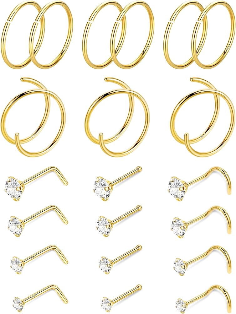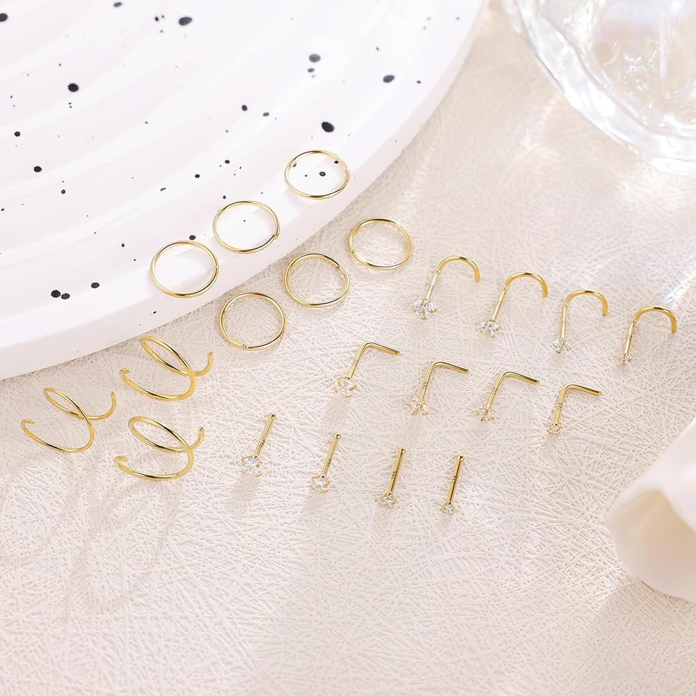 💗أزرار الأنف للنساء: مجموعة مكونة من 21 قطعة من حلقات الأنف، بما في ذلك حلقة أنف حلزونية فريدة مصنوعة يدويًا ومجوهرات مزدوجة المثقوبة، يمكن أن تحتاج فقط إلى ثقب أنف واحد. يمكنك أيضًا استخدام طوق الأنف المزدوج هذا لثقب الغضروف، وثقب الحلزون، وهو أيضًا طريقة عصرية للارتداء.
