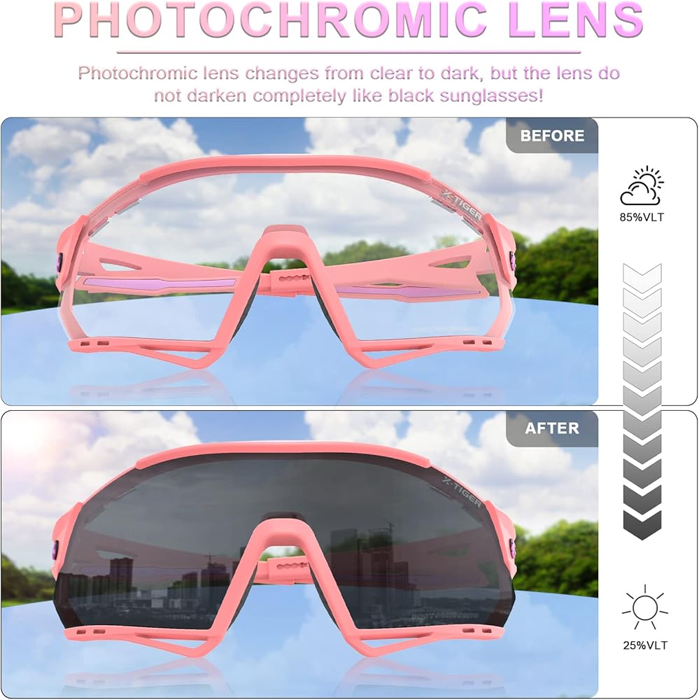 • 【العب أي رياضة في أي وقت】 تعتبر النظارات الرياضية X-TIGER Photochromic للرجال والنساء مثالية لمحبي ركوب الدراجات، والدراجات النارية، وMTB، وركوب الدراجات، والقيادة، والجري، والبيسبول، وصيد الأسماك، والسباق، والجولف، والتزلج والمشي لمسافات طويلة، والرحلات أو غيرها من الأنشطة الخارجية. أنشطة.