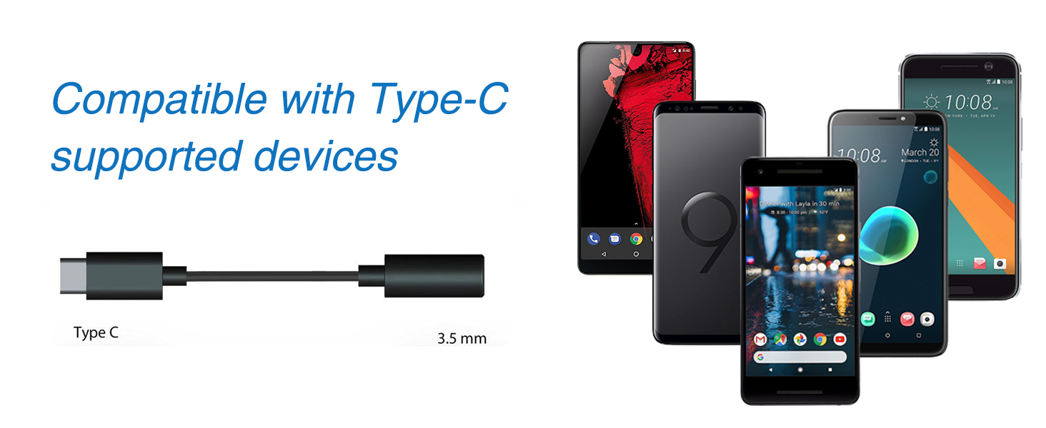 [يدعم تشغيل الموسيقى والمكالمات] يدعم Samsung Galaxy S8/S9/N8 تشغيل الموسيقى فقط ولا يدعم الاتصال. يمكن لمحول الصوت هذا أن يدعم تشغيل الموسيقى والاتصال لمعظم الهواتف الذكية المزودة بمنفذ USB c. ملاحظة: إذا كان هاتفك الذكي usb c يحتوي على منفذ صوت 3.5 مم، فقد لا يدعم محول الصوت هذا الاتصال، مثل Samsung Galaxy S8/S9/N8