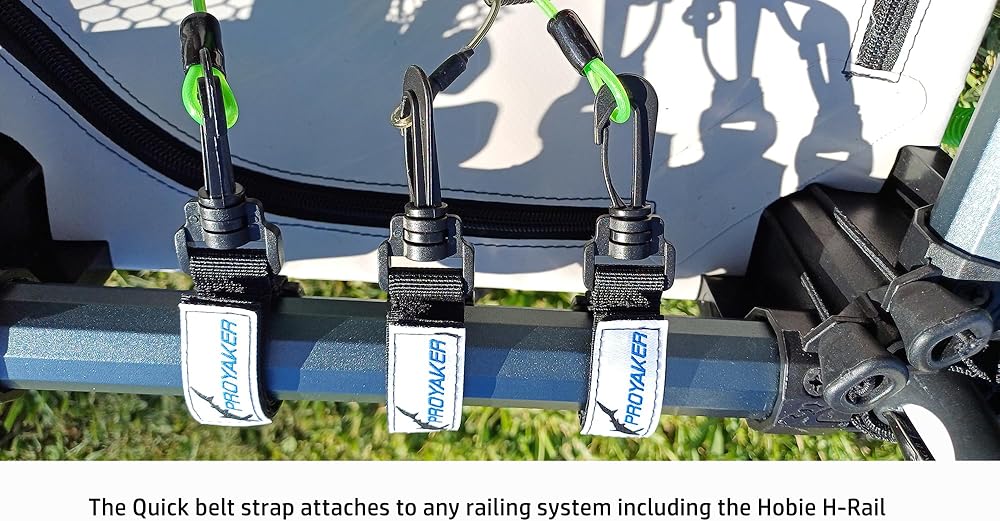 • [ HOBIE H-RAIL COMPATIBLE ] The quick belt style quick strap attaches easily to the Hobie H-Rail system or any other Kayak or Boat Rail.