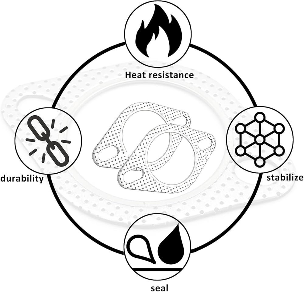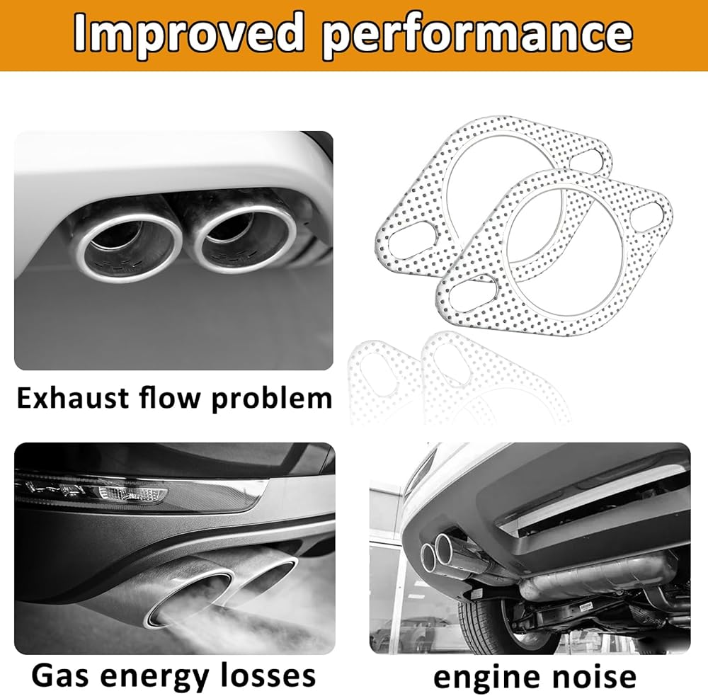 【Excellent Selection】: Our exhaust flange gasket is vehicle tested and verified to ensure the best performance on the road, each 2.5 inch car exhaust gasket is carefully tested and inspected before shipment, please feel free to contact us if you have any questions.