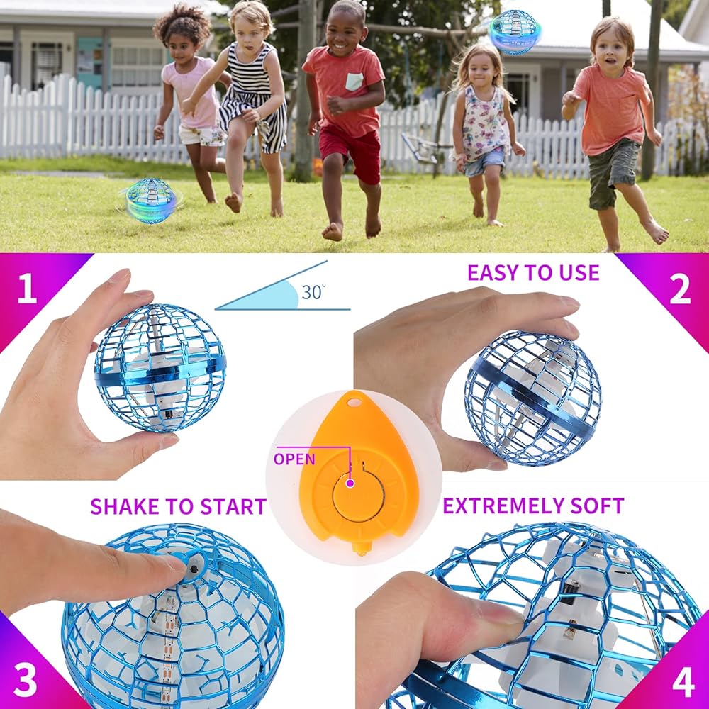 الكرة العائمة للأطفال في الهواء الطلق لعبة 360 درجة سحرية دوارة UFO وامضة LED غلوب التحكم عن بعد تحلق الكرة الجرم السماوية ضوء ملون لعيد الميلاد هدية يطير الغزالون يطير غلوب لعبة للأطفال من سن 3 وما فوق (الأزرق)