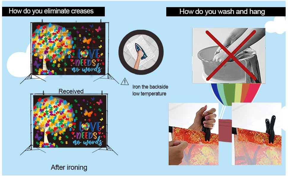 ★2. All backdrop will send by folded,because according to rule of post office, length of item cannot be more than 1.2m. So we have to send items by folded.Below is the ways to removed the creases.