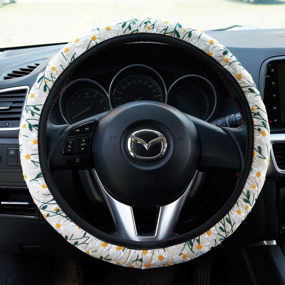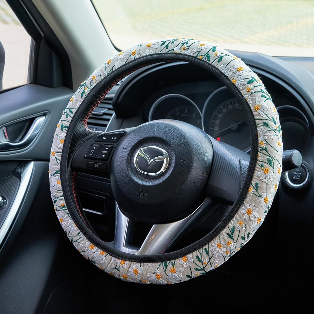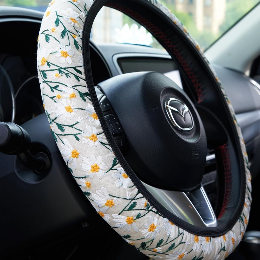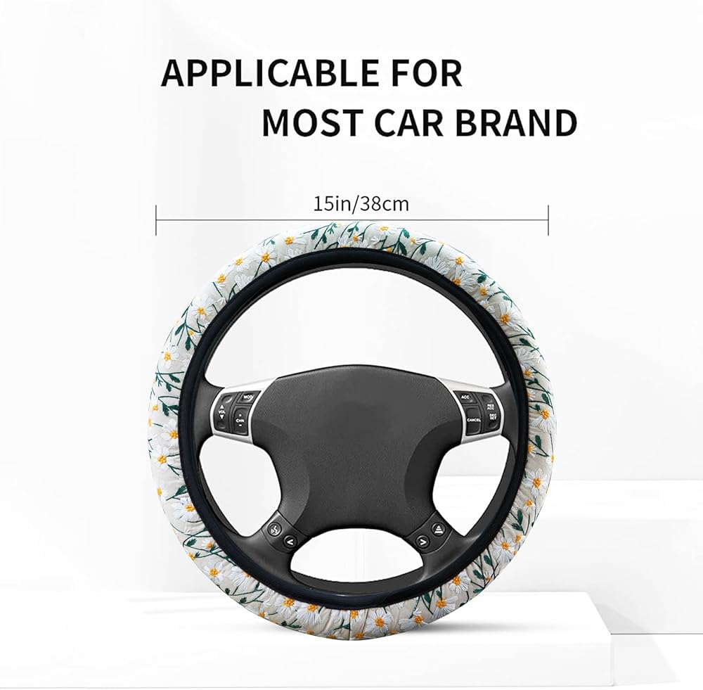 🌿Perfect protection: - Embroidery Flowers Black Cute steering wheel cover not only has a stylish appearance, but also provides you with safe and reliable protection. Non-slip inner ring can increase grip and reduce the shock of you hands when driving, it is protect your hands from the heat and cold and your steering wheel. It is a very good gift for friends, lover or family