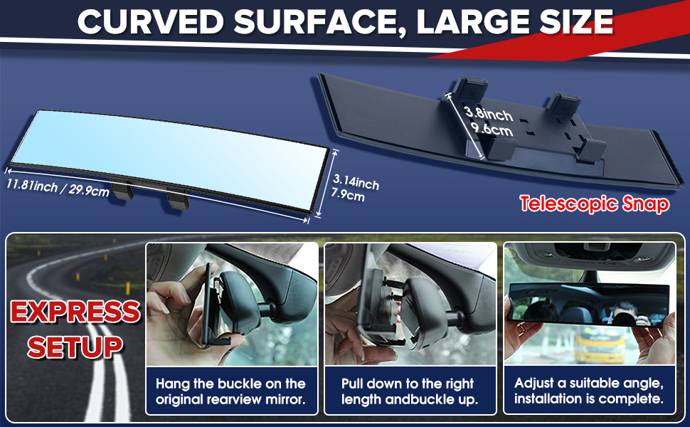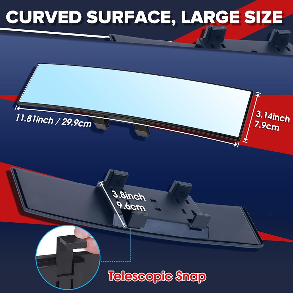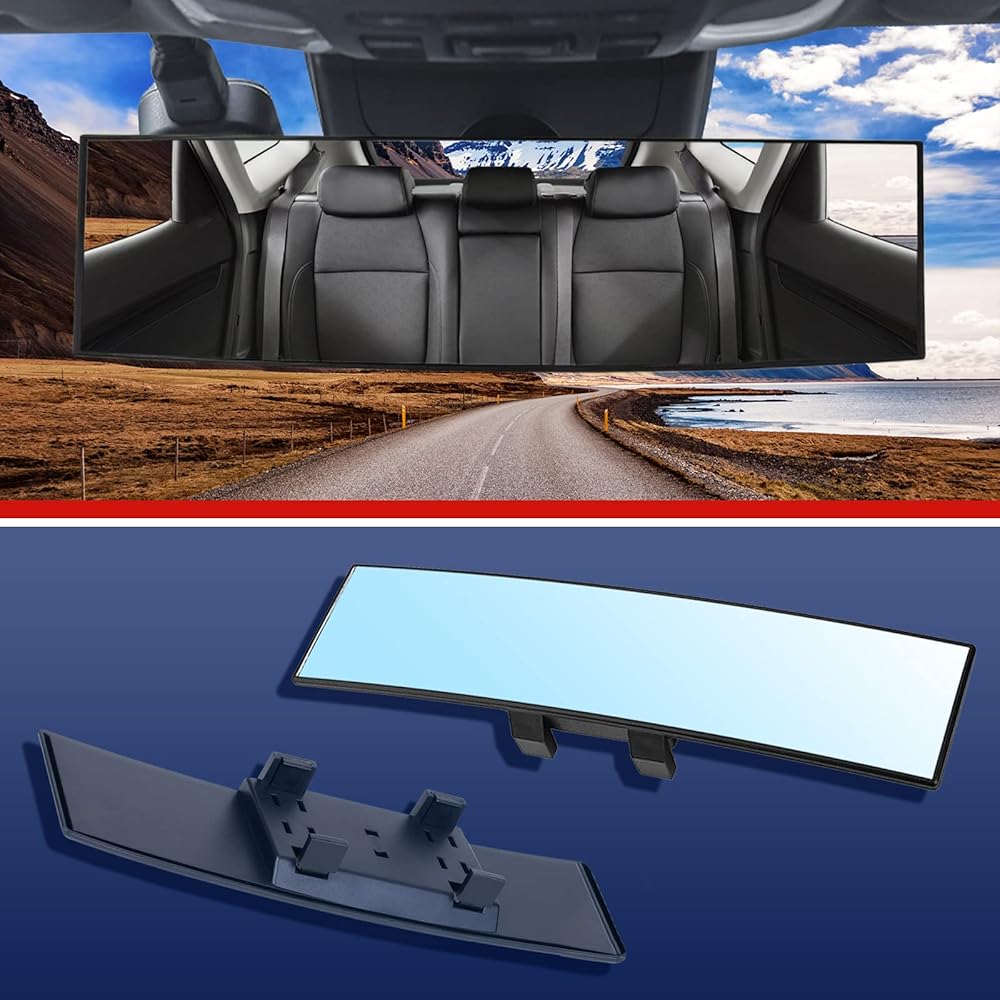 【حجم عالمي】 مرآة الرؤية الخلفية البانورامية بمقاس 11.81 × 3.1 بوصة ولها مجال رؤية أوسع من المرايا الأخرى وتناسب معظم المركبات مثل السيارات وسيارات الدفع الرباعي وCRVs والشاحنات الصغيرة.