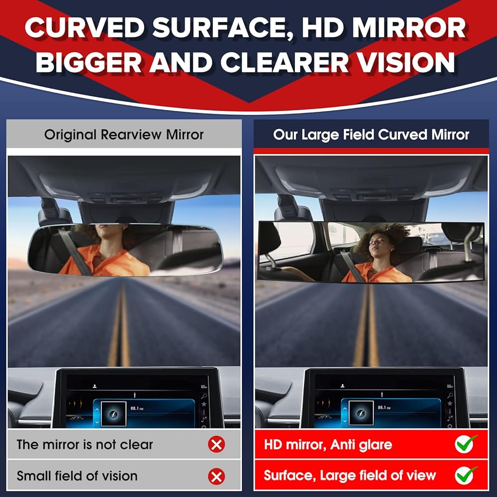 【عالية الجودة】مرآة الرؤية الخلفية المشبكية هذه مصنوعة من زجاج عالي الجودة للقضاء على التشوه والانعكاس المزدوج بفعالية، مما يمنحك رؤية مثالية وصور واضحة وأصلية دون صور متداخلة أو مشوهة.