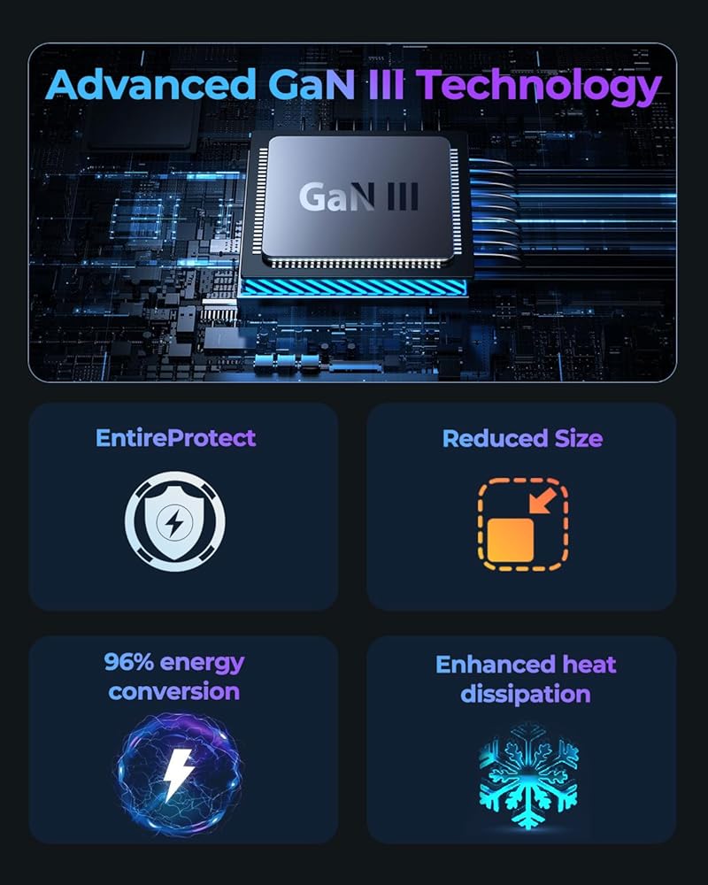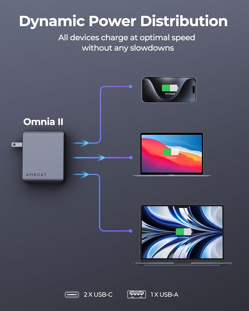 شحن متعدد المنافذ 3 في 1: يتيح منفذا PD3.1 USB-C ومنفذ USB-A الشحن المتزامن لجهازي كمبيوتر محمول مقاس 14 بوصة وهاتف خلوي. مثالية لعشاق التكنولوجيا الذين يديرون أجهزة متعددة. قل وداعًا للمحولات كبيرة الحجم، حيث يحافظ تصميمنا المدمج على مساحة العمل الخاصة بك خالية من الفوضى.