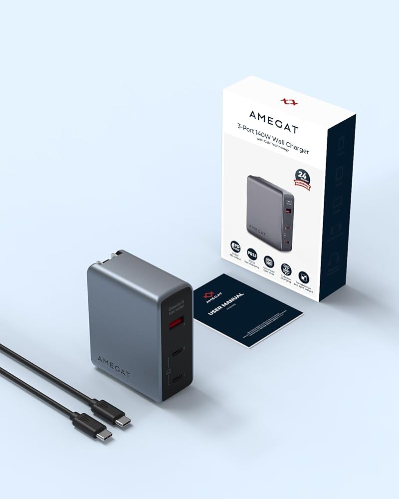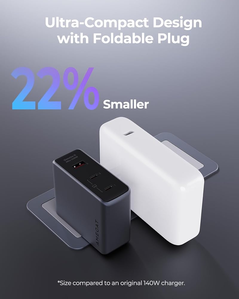 حجم أصغر، كفاءة مثالية: من خلال الاستفادة من تقنية GaN الثورية من الجيل الثالث، قمنا بتقليل حجم شاحن AMEGAT 140 واط بنسبة 22% مقارنة بالشاحن الأصلي 140 واط. استمتع بسهولة النقل دون المساس بالقوة أو الجودة. (يتضمن كابل USB-C بقدرة 240 واط.)