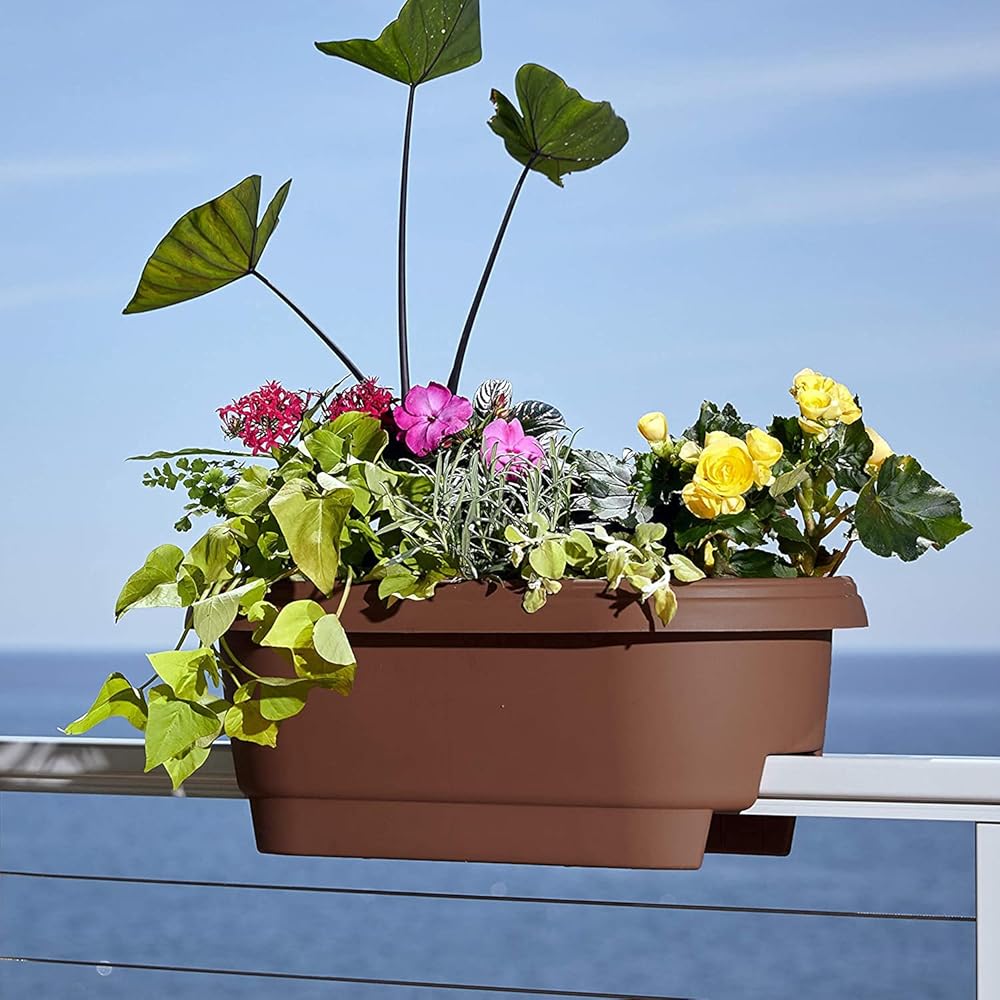 يعد هذا الزارع رائعًا للاستخدام في المنزل أو الشقة ويساعدك على تحقيق أقصى استفادة من مساحة المعيشة في الشرفة أو الفناء. زراعة حديقة صغيرة في مكان مرتفع. يضمن التصميم المضغوط ملاءمة آمنة على السكة العريضة مقاس 4 بوصات أو 6 بوصات. تم تصميم المزارع لتحقيق أقصى قدر من المساحة الداخلية للنمو ويتميز بتصميم سفلي متدرج يسمح للأوساخ والجذور بالنمو بقوة وعمق. يتميز الزارع بملمس ناعم مع لمسة نهائية غير لامعة. مصنوع من الراتنج المتين، هذا النبات من BLOEM مستقر بنسبة 100% للأشعة فوق البنفسجية لمنع بهتان اللون والتشقق ويضمن استخدامًا طويل الأمد. خالية من مادة BPA. يشتمل على فتحات اختيارية للتصريف.