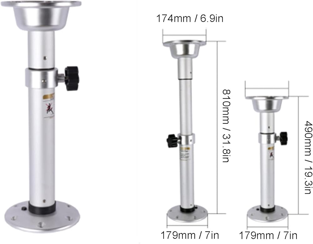 حامل طاولة قابل للتعديل 19.3 بوصة - 31.8 بوصة، قواعد مقعد القارب من الألومنيوم نظام أرجل الطاولة مع أجزاء قاعدة تثبيت عالمية لقافلة القوارب البحرية RV