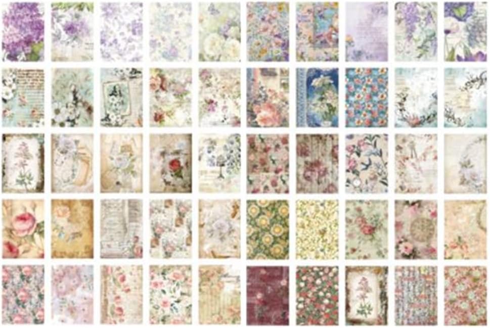 100 ورقة من لوازم سجل القصاصات العتيقة، ورق مواد يومية، ورق سجل القصاصات، ورق حرفي مزخرف، من أجل لوازم تزيين مجلة اليوميات غير المرغوب فيها DIY Craft (زهرة)