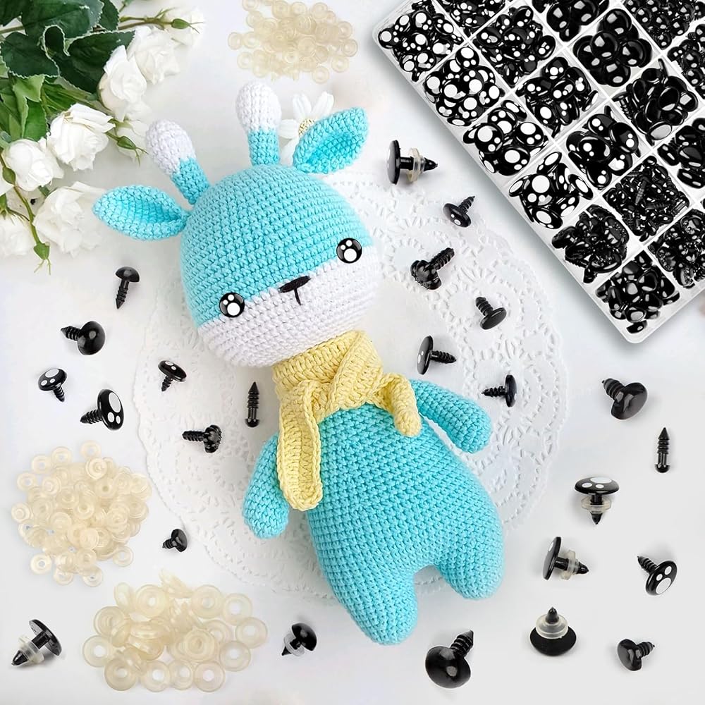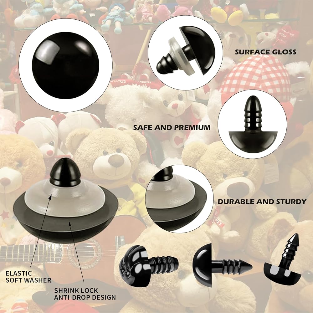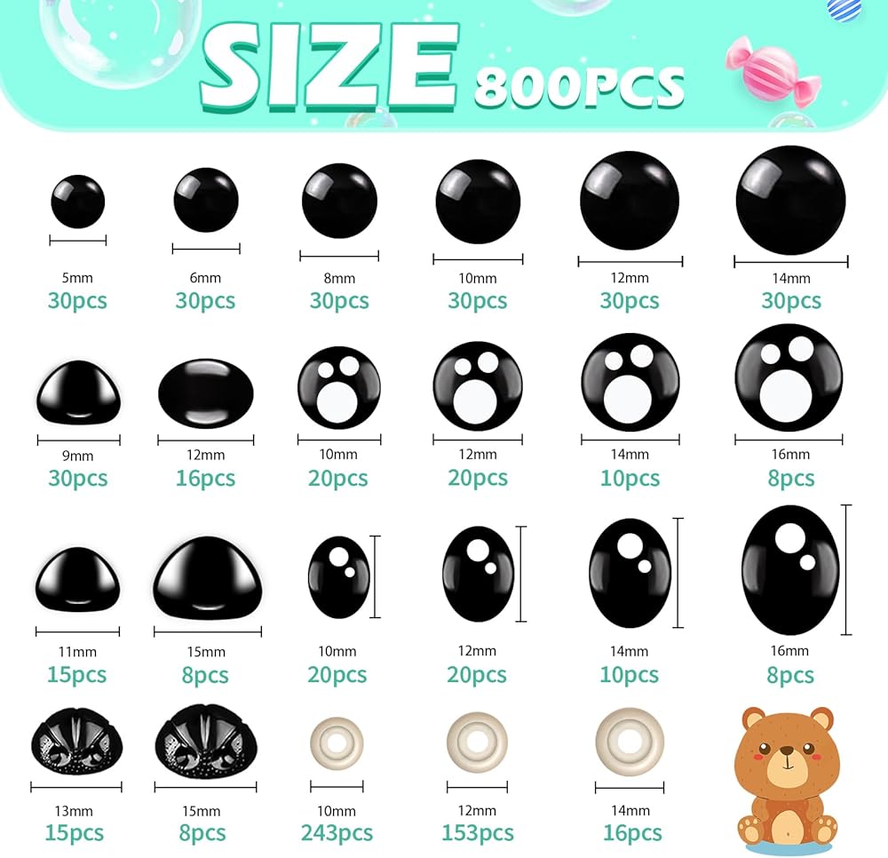 800 قطعة من عيون وأنوف الأمان للأميجورومي، عيون كروشيه محشوة مع غسالات 5-16 مم، عيون أمان بلاستيكية من الكروشيه، عيون أمان سوداء لعيون الحيوانات المحشوة من الكروشيه للحرف تيدي بير 4