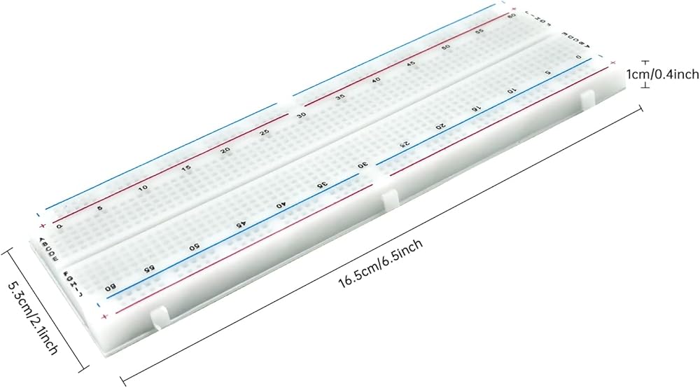 - Material: The breadboard is made of ABS plastic with clearly printed lines, letters and numbers to reduce mishandling.