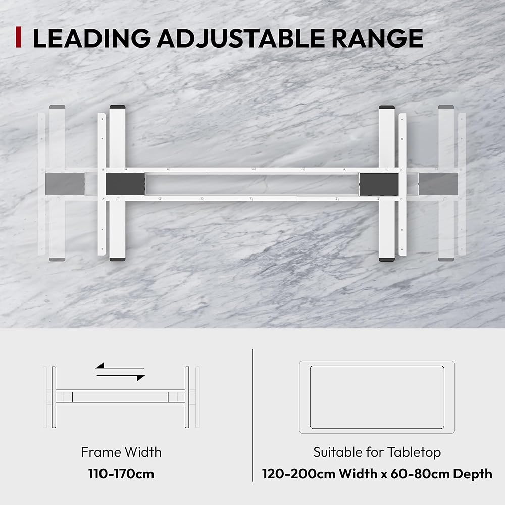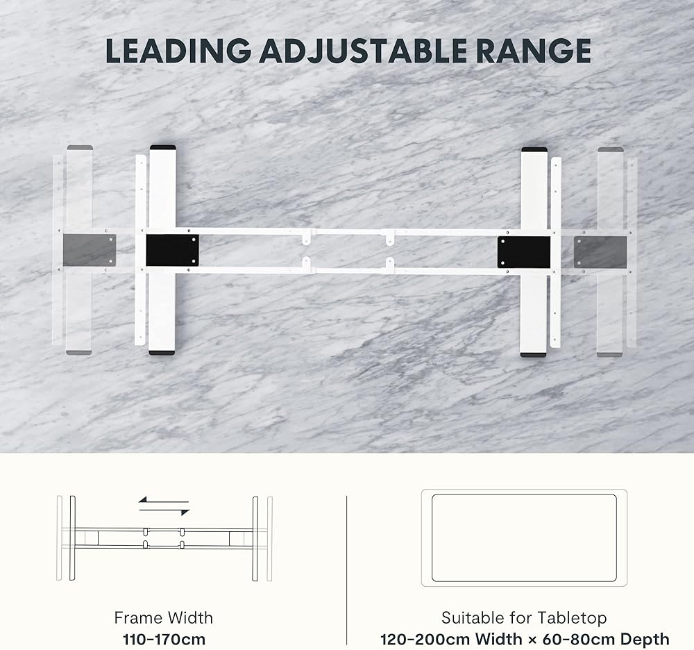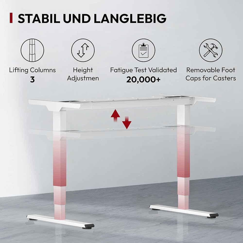 محركات مزدوجة صامتة وفعالة: ارفع وخفض مكتبك الكهربائي مع ضمان، حتى في المناطق المحيطة الهادئة. تعمل المحركات المزدوجة بأداء هادئ للغاية، وتنتج أقل من 50 ديسيبل من الصوت بينما تتعامل بسهولة مع وزن أكبر بنسبة 65% (220 رطلاً) مقارنة بالمكتب ذو المحرك الواحد. ويضمن تشغيله الهادئ بيئة هادئة، دون إزعاج حتى بالنسبة للطفل النائم.