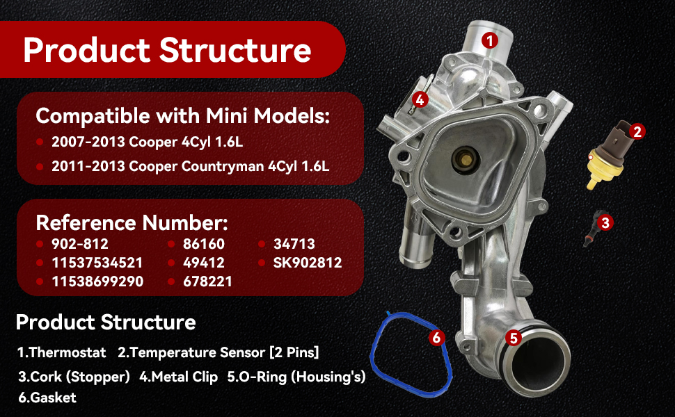 • 【11537534521 ترموستات الإسكان الألومنيوم متوافق مع 】 متوافق مع Mini Cooper R55 (2007-2013)/Mini Cooper R56 (2007-2013)/Mini Cooper R57 (2007-2013)/Mini Cooper Countryman (2011-2013) (يرجى التحقق من غطاء الألومنيوم ترموستات سواء كان متوافقًا مع سيارتك)