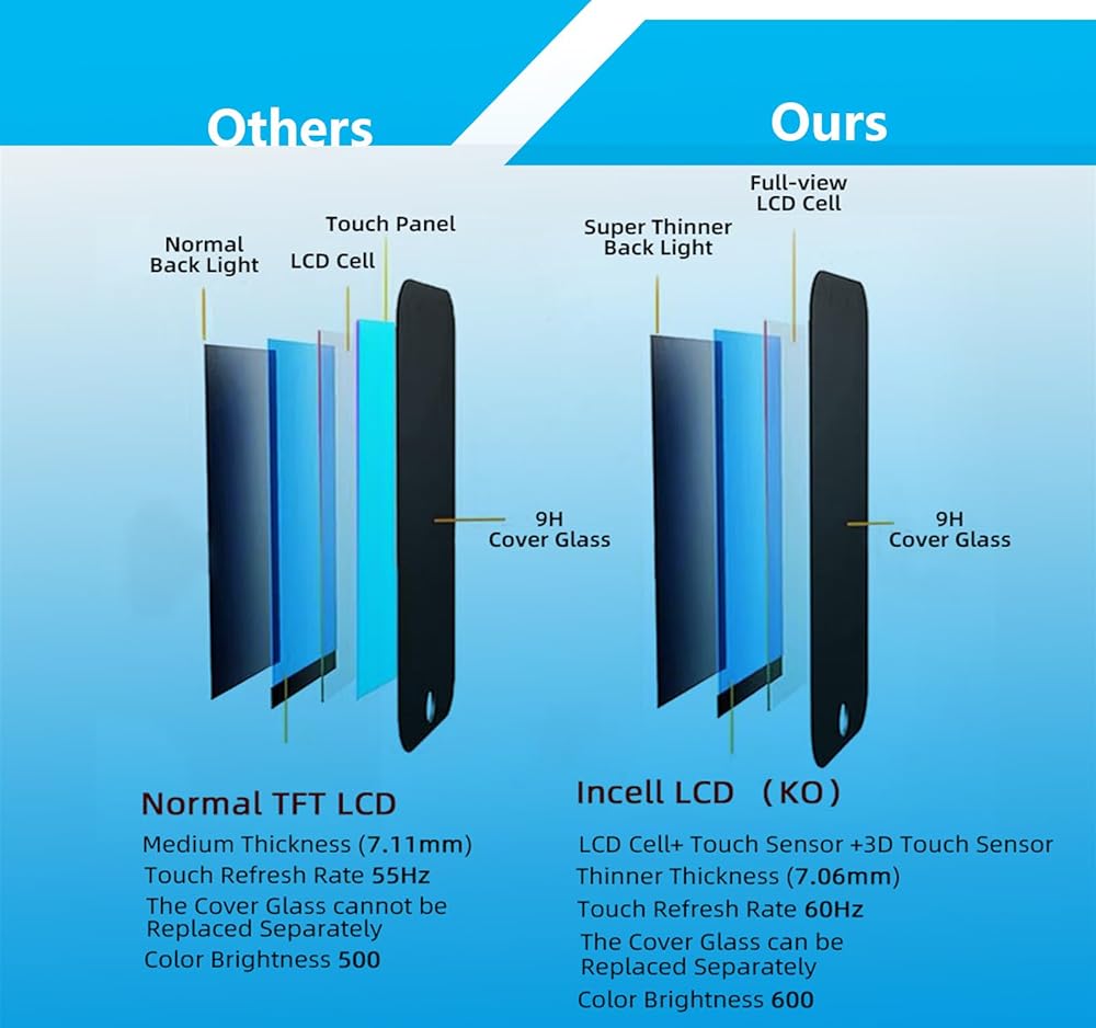 استمتع بصور نابضة بالحياة على بديل شاشة HD متعددة اللمس لجهاز iPhone. بفضل دقة الألوان العالية والسطوع والطلاء المقاوم لبصمات الأصابع، استمتع بشاشة واضحة وسريعة الاستجابة وخالية من التلطخ تعمل على تحسين تفاعل iPhone الخاص بك. ارفع تجربتك البصرية دون عناء.