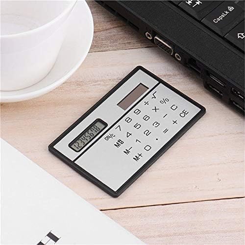 حاسبة طاقة شمسية رفيعة للغاية مكونة من 8 أرقام فضية وسوداء مع شاشة تعمل باللمس وتصميم بطاقة الائتمان، آلة حاسبة صغيرة محمولة لحاسبات المكتب الأساسية لكلية إدارة الأعمال، آلة حاسبة صغيرة