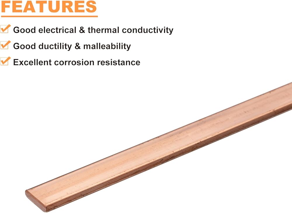 Multiple Features - Corrosion resistance, making copper flat bars highly durable in various environments. It can still work well under hot or moisture conditions and enables it to maintain its integrity and performance over extended periods. Its electrical and thermal conductivity makes copper flat bars great for applications that require efficient heat or electricity transfer.