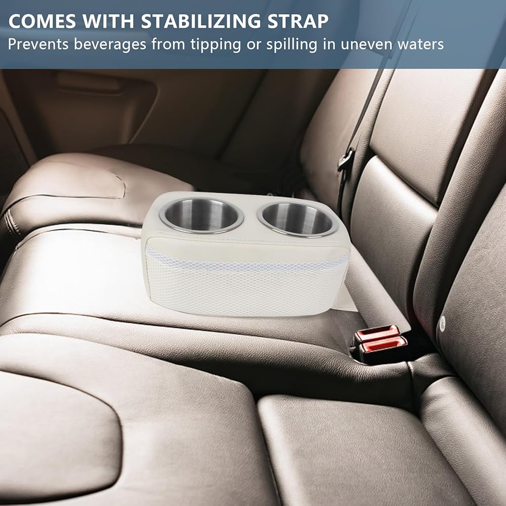 【Stable and Safe】With boating conditions in mind,our pontoon drink holder comes with a stabilizing strap, by inserting the strap into the space between the seat and the cushion,which ensure that the cup holder is firmly held in place,prevents your beverages from tipping or spilling in uneven waters, even if the boat or vehicle experiences some turbulence or movement, the pontoon boat cup holder will remain stable, keeping your beverages intact.