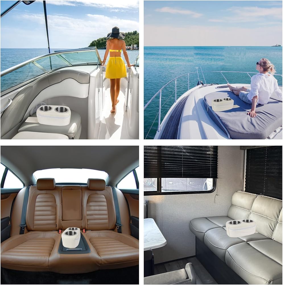 【Wide Applications】This pontoon cup holders is not limited to just pontoons, it is also suitable for fishing boats, yachts, and motorhomes. With its versatile design, it can be used as additional beverage holder on a pontoon boat sofa, allowing everyone on board to have their own space for their drinks. It can also be placed in the back of cars and motorhomes, providing a convenient and accessible drink holder for yours.Its white exterior works well with a variety of pontoon boats and RV sofas.