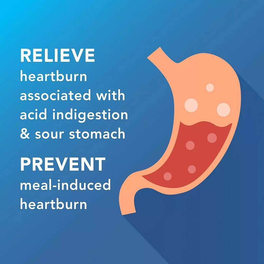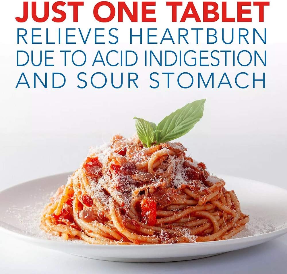 Just one tablet prevents and relieves heartburn due to acid indigestion and sour stomach