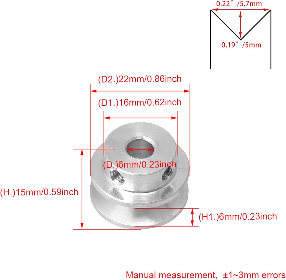 - القطر: 22 مم، الفتحة: 6 مم، السُمك: 15 مم، حجم العمود: 16 × 6 مم (القطر × الارتفاع).