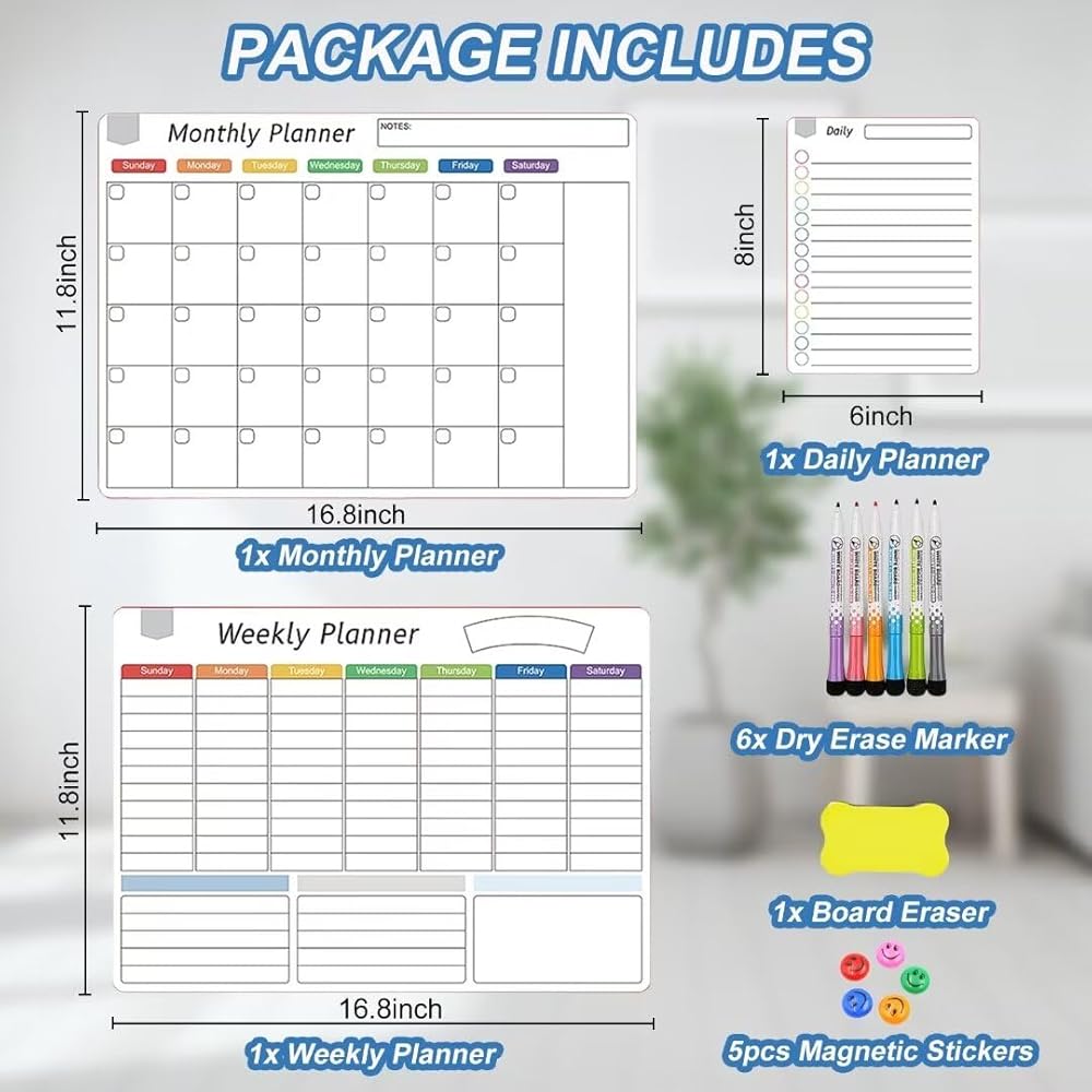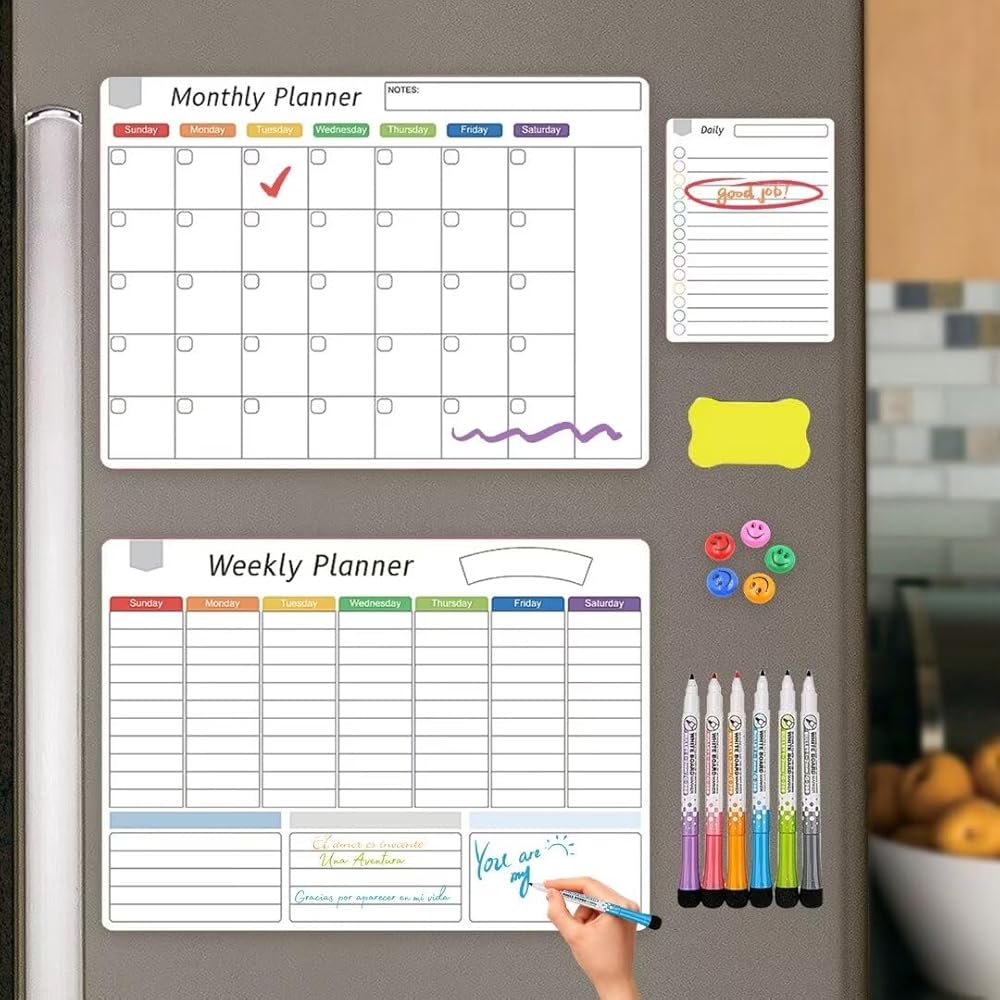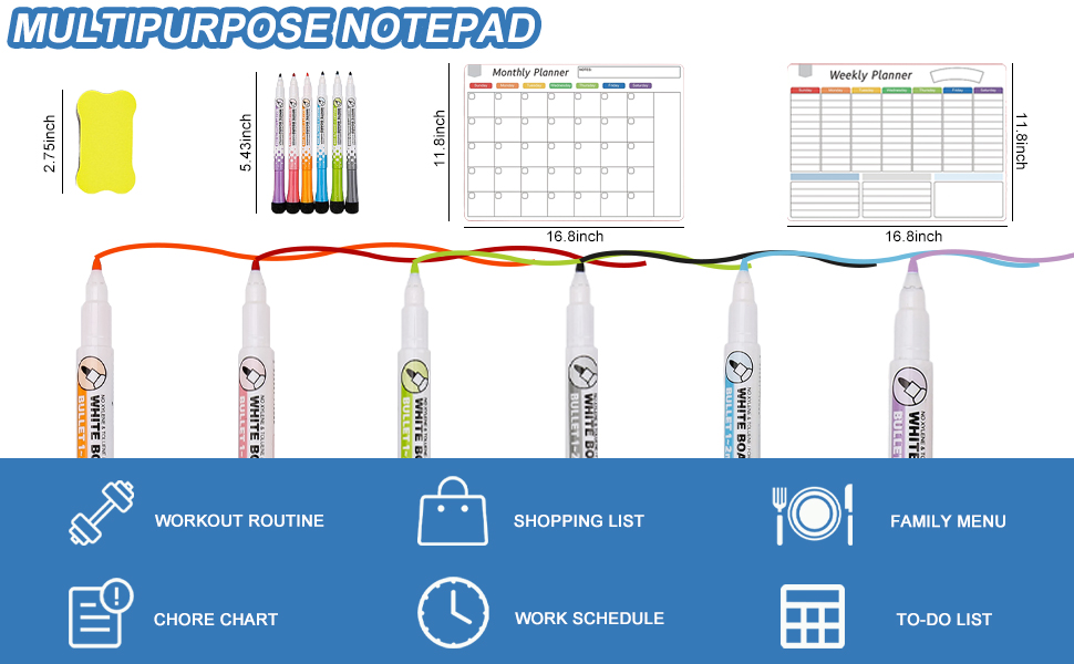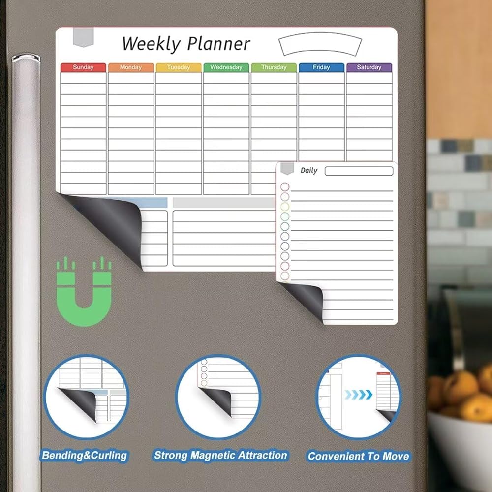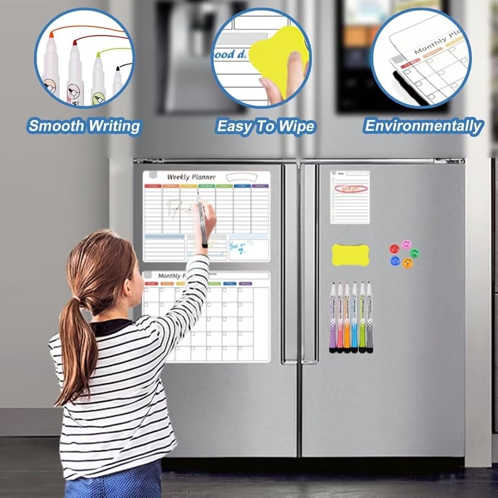 【اختيار رائع】 مجموعة تعبئة السبورة البيضاء المغناطيسية القابلة للمسح الجاف مثالية لتنظيم الأسرة والطلاب والمعلمين. مثالية لقائمة البقالة، وقوائم التسوق، وخطط القائمة، وتذكير عيد الميلاد، ومخطط الوجبات، والجداول المدرسية، وتتبع الأهداف، والخطط الأسبوعية، وقائمة المهام اليوم، ومخطط المهام للبالغين، ورفيق المذكرات وما إلى ذلك. خطط لحياتك بسهولة لتجنب فقدان التواريخ المهمة .