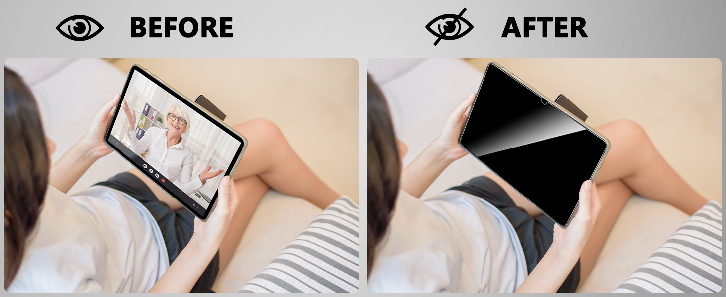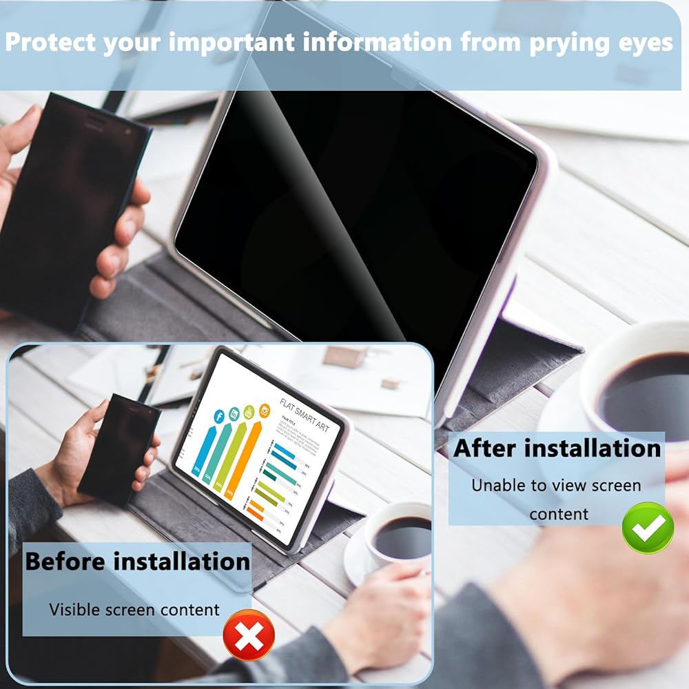 【حماية الخصوصية】 مصمم لجهاز iPad Air 13 بوصة (2024)، عندما يتم حمل iPad أفقيًا، فإنه يكون مرئيًا فقط للشخص مباشرة أمام الشاشة. إنه يحمي خصوصيتك من أعين الغرباء المتطفلين في الحافلات أو المصاعد أو مترو الأنفاق أو الأماكن العامة الأخرى.