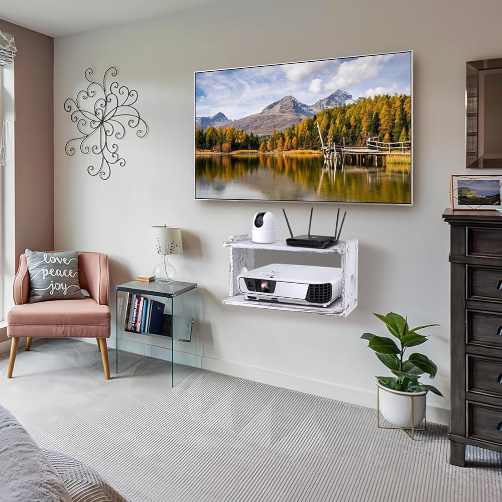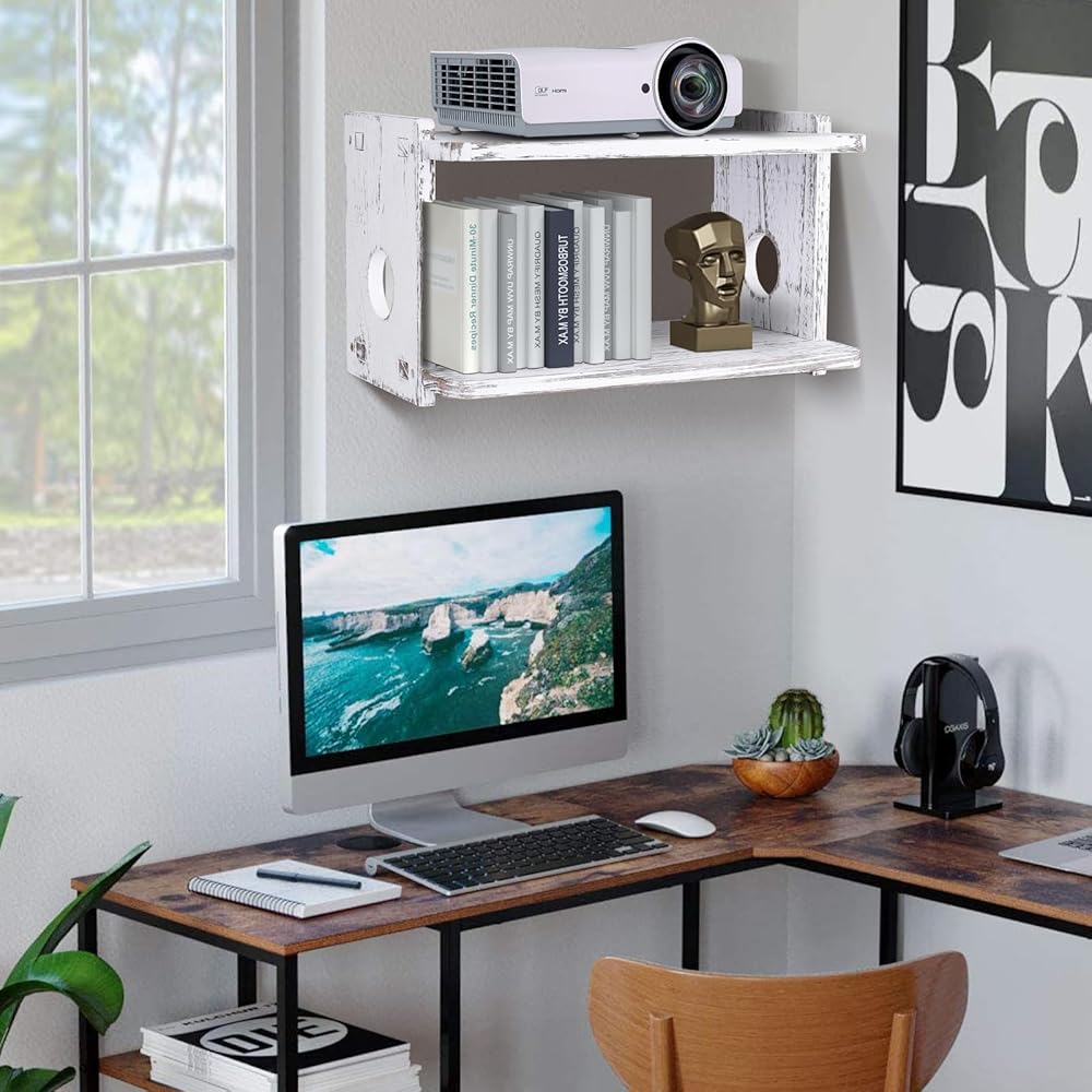رف خشبي عائم لجهاز العرض، رف جهاز التوجيه PS3/PS4، حامل تثبيت على الحائط لجهاز بلاي ستيشن واي فاي، صندوق تخزين جهاز التوجيه، حامل جهاز عرض، جدار مثبت على الحائط لمشغلات Xbox DVD، وحدات تحكم الألعاب