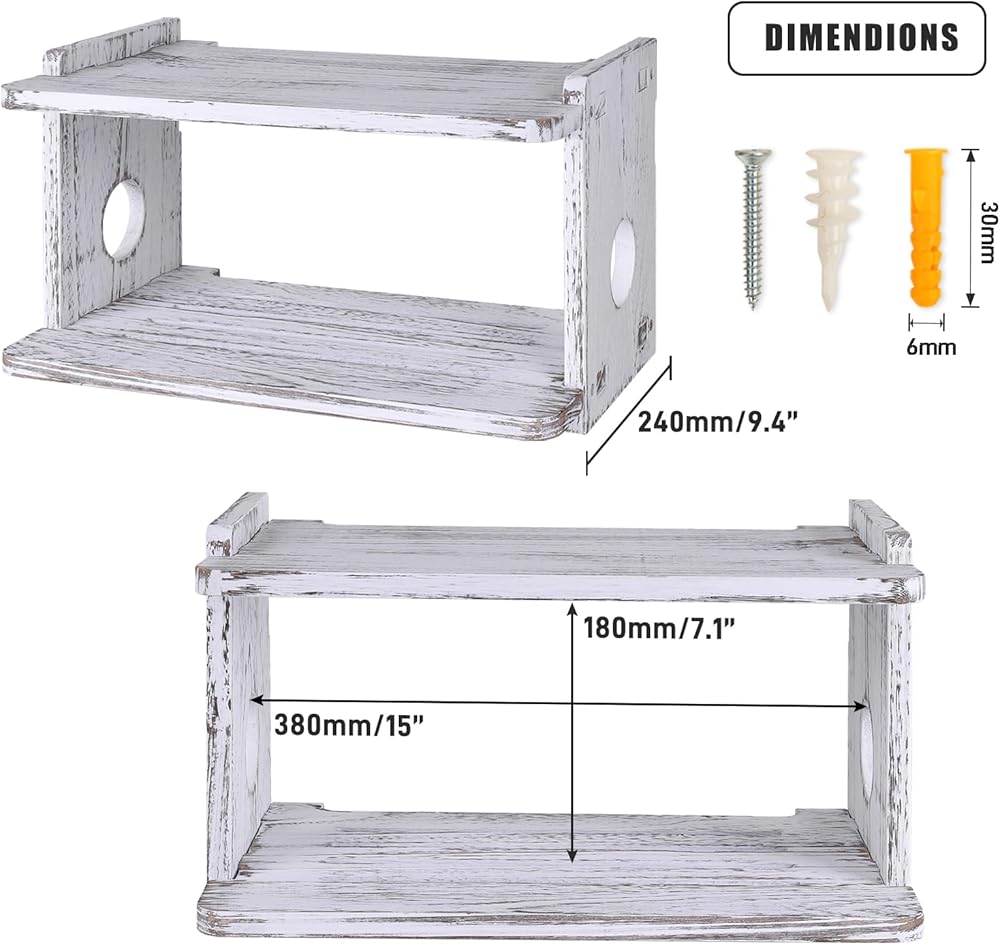 Thank you for your attention to our products. It is used to store the router,modem,power strip. Material: Wood Inner diameter size: 14.8" x 7.1" x 9.4" (length * height * width) Package:1*Shelf ,no other products. Manually measure all data, please allow us to have an error of 1-2 cm.