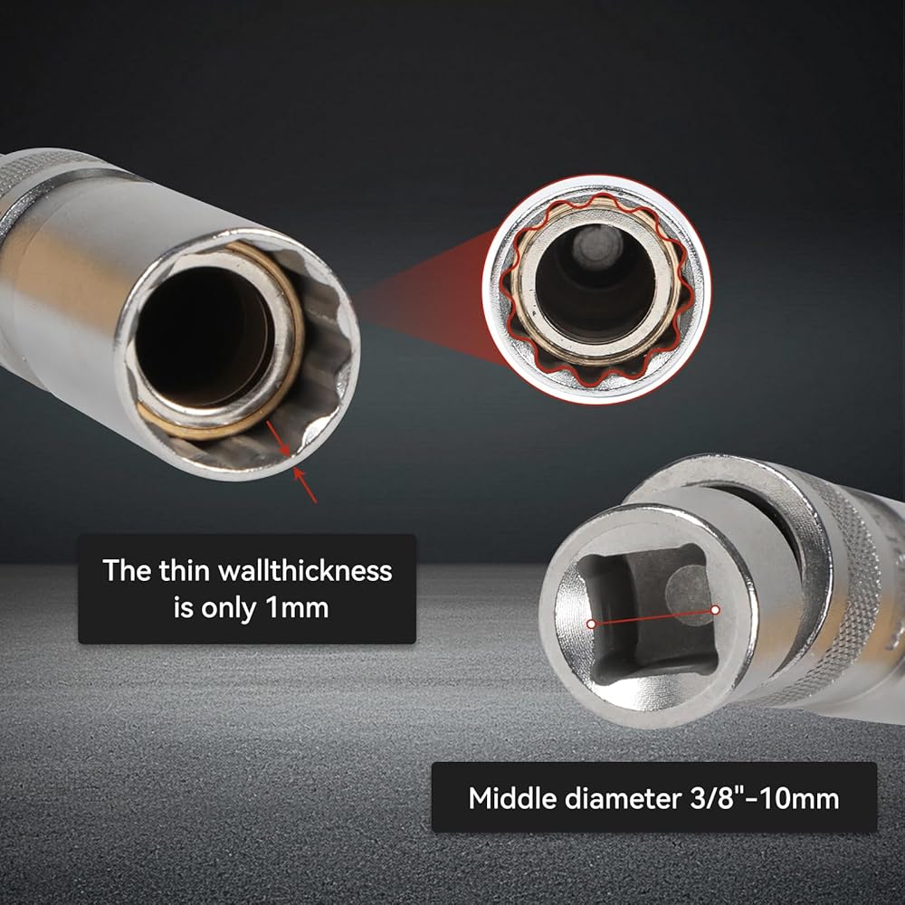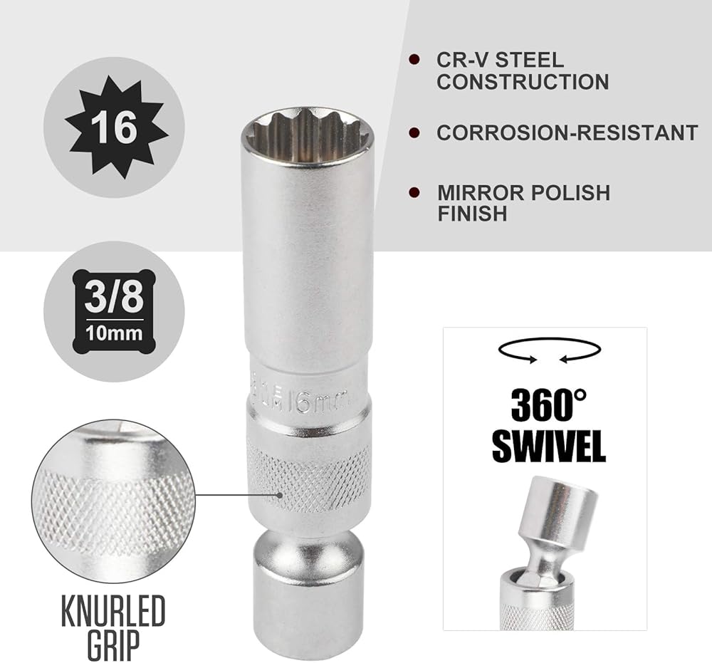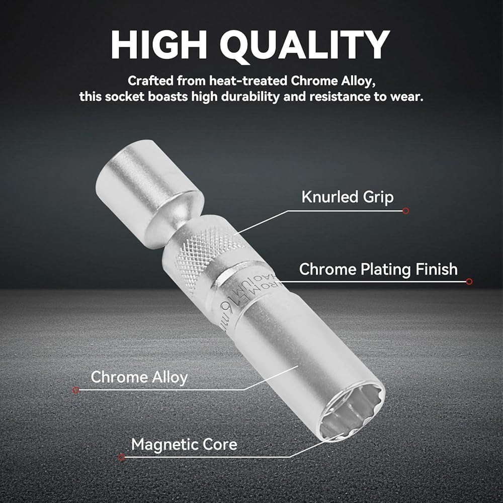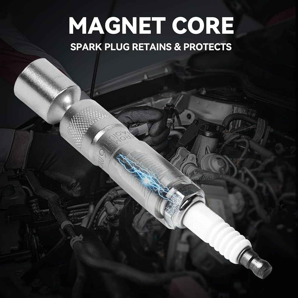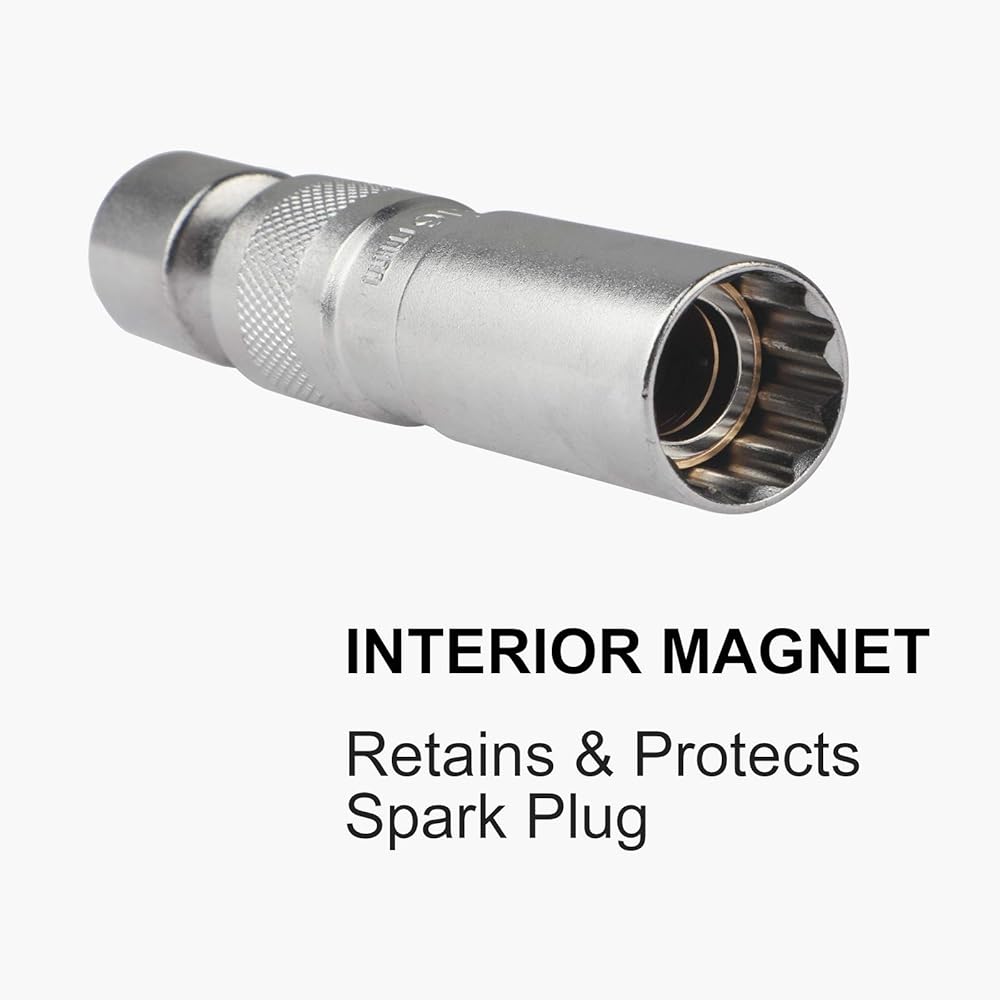 تصميم مغناطيسي عالي التحمل: يحتوي مقبس قابس الإشعال ذو 12 نقطة على كتلة مغناطيسية قوية للغاية مدمجة تحمل قابس الإشعال بقوة أثناء التثبيت والإزالة لمنع السقوط والتلف.