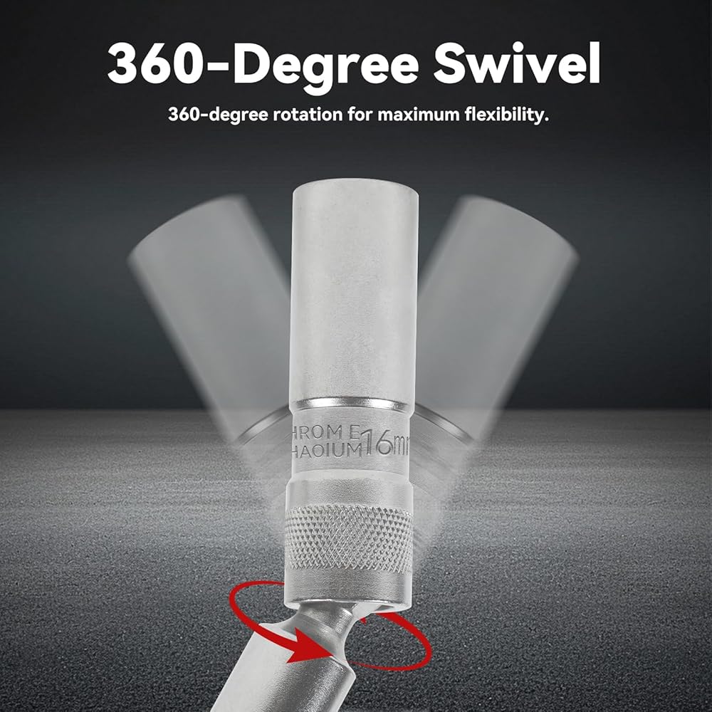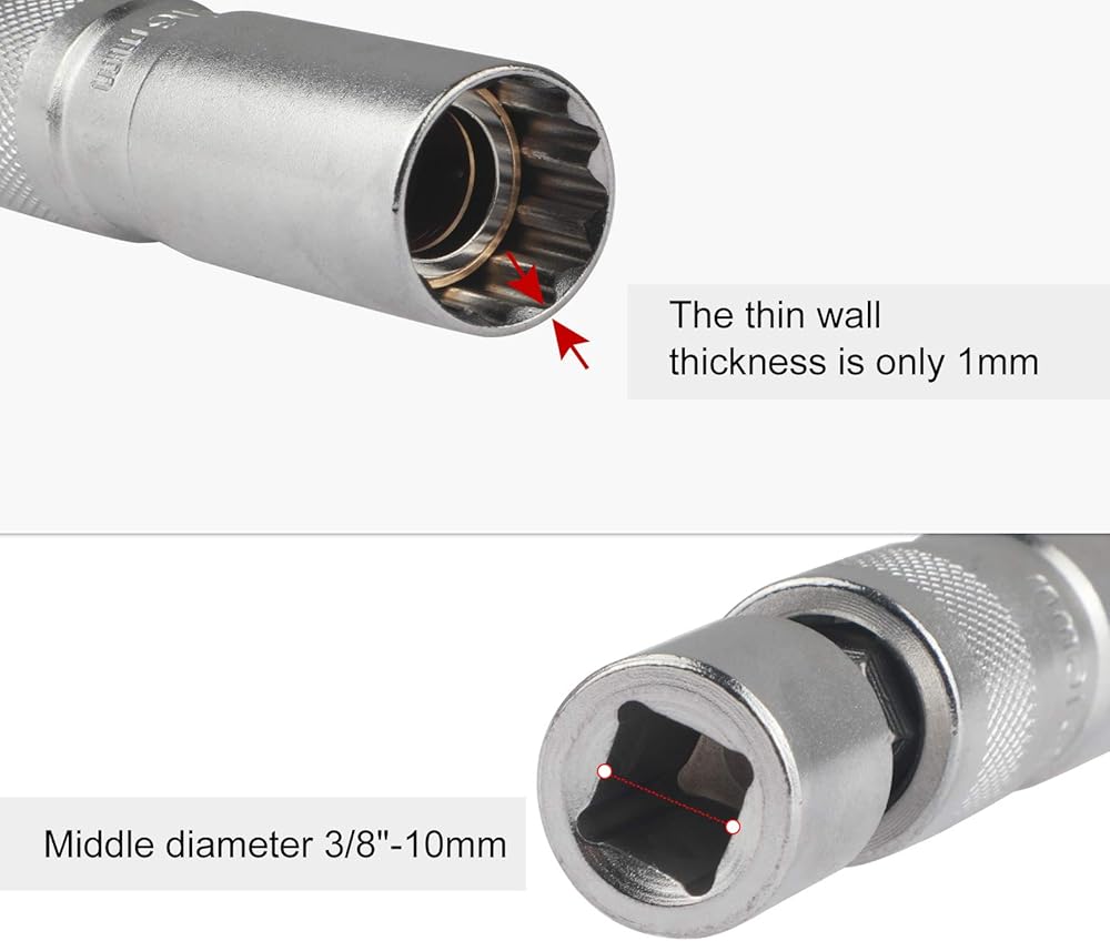 جودة متينة: مقبس قابس الإشعال مقاس 14 مم 3/8 بوصة مصنوع من فولاذ سبائك الفاناديوم الكروم الفاخر المعالج بالحرارة، مما يعزز قوته ومتانته. مع لمسة نهائية من الكروم المصقول، يمكنه منع الصدأ والتآكل بشكل فعال، ويمسح الزيت بسهولة. والأوساخ.