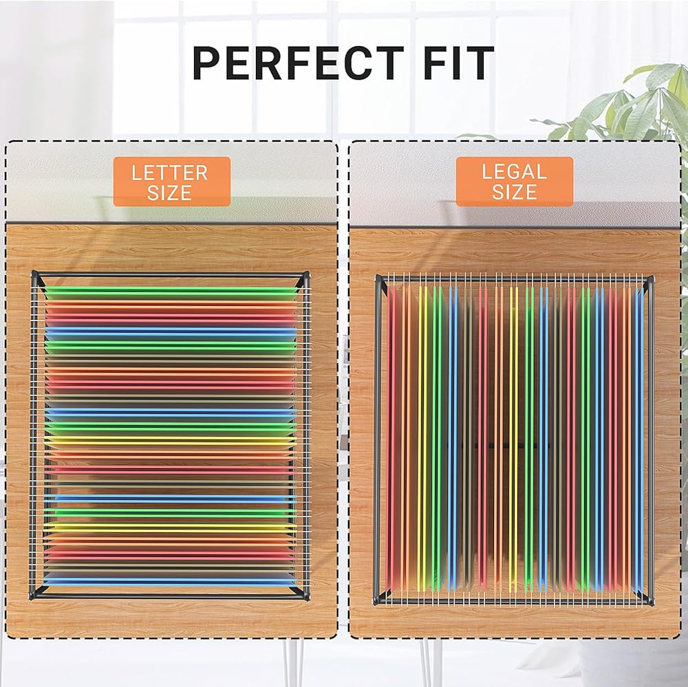 【مناسب للحجم القانوني/الأحرف】منظم خزانة الملفات هذا، حل متعدد الاستخدامات مصمم ليناسب كلاً من الحجم القانوني/مجلدات التعليق بحجم الحروف، الجانب القصير مناسب لمجلدات الملفات المعلقة بحجم الحروف، والجانب الطويل مناسب لملفات التعليق ذات الحجم القانوني. مجلدات، مثالية لحفظ جميع أنواع المستندات المهمة منظمة ومخزنة في خزانة ملفات واحدة.