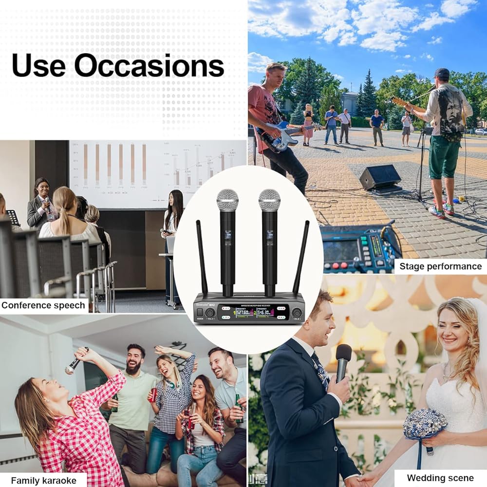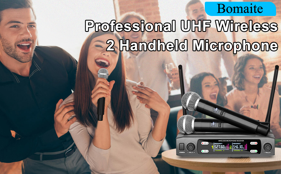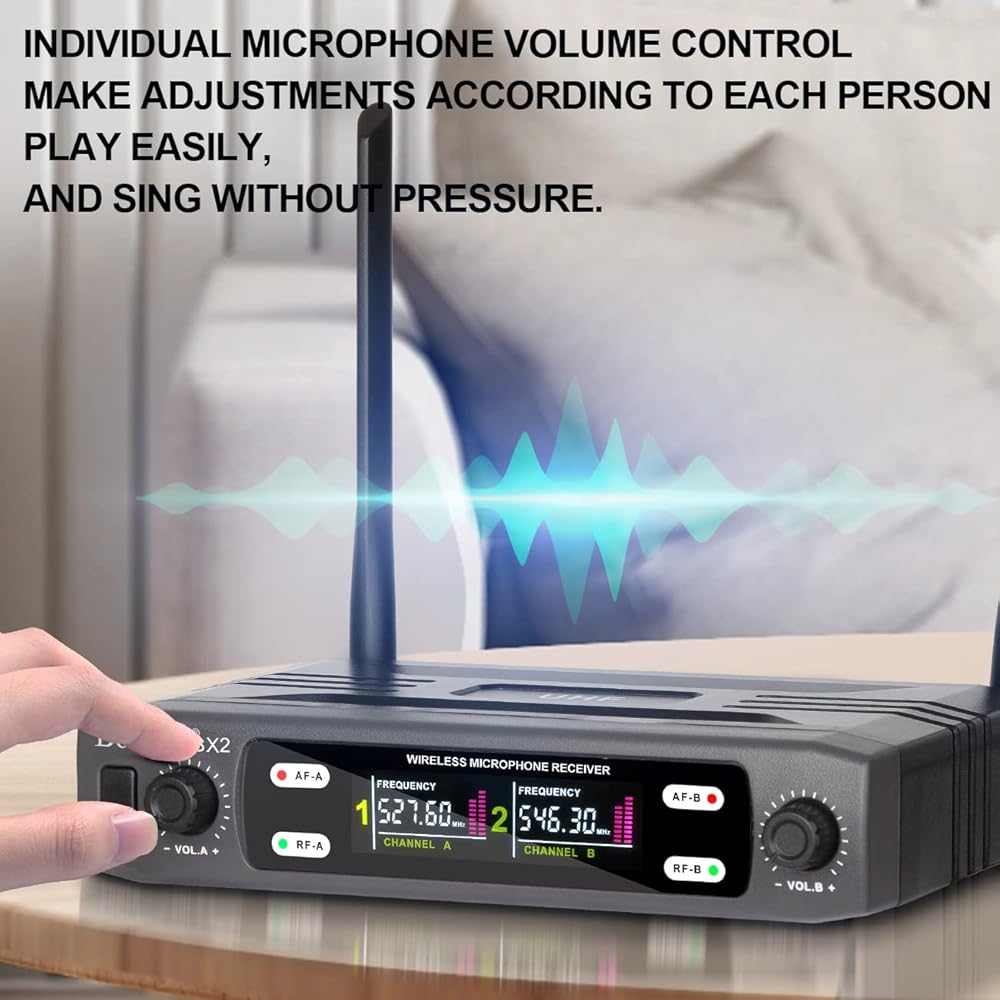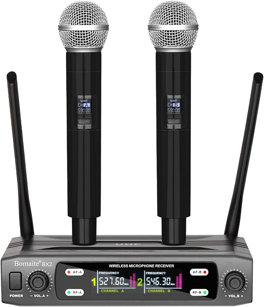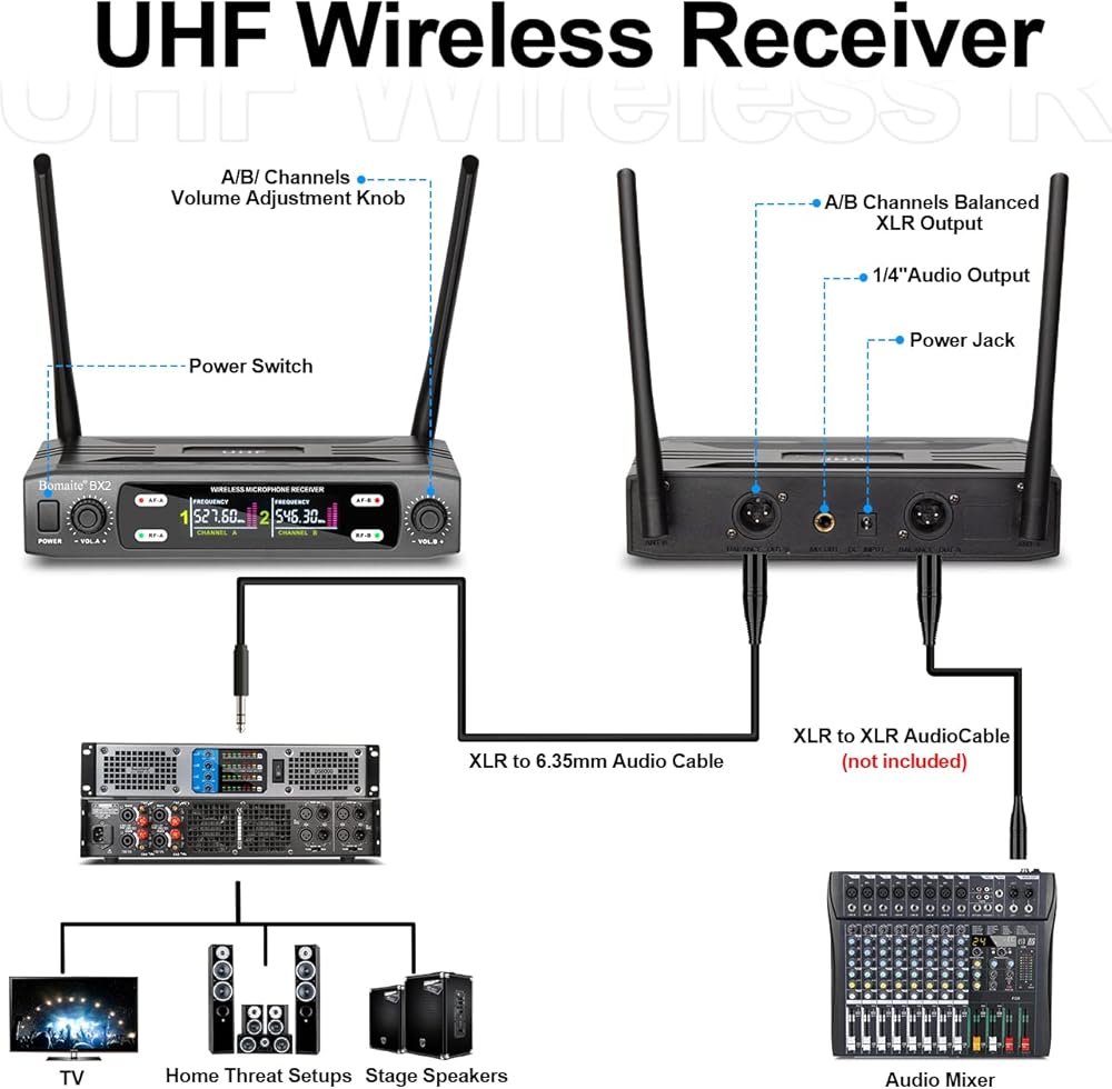 نظام ميكروفون لاسلكي BX2 UHF مع ميكروفون مزدوج محمول به واجهة XLR، نطاق 165 قدم، للكاريوكي العائلي، أداء المسرح، مشهد الزفاف، خطاب المؤتمر (رمادي)