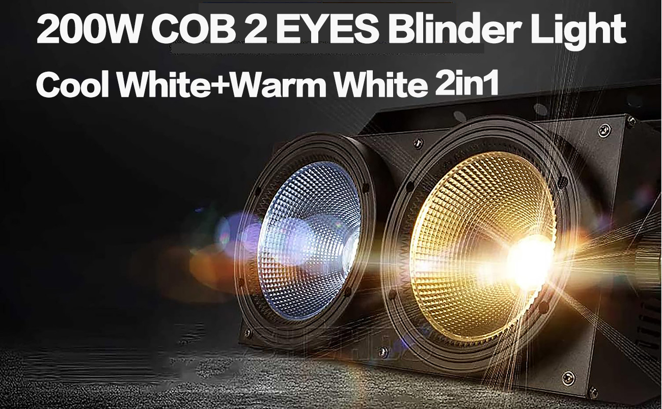 SHEHDS Blinder Lights Par Lights 200W COB 2 عيون أبيض بارد + أبيض دافئ (3200K-5600K CT) 90 درجة شعاع ملاك أضواء الجمهور صب غلاف من الألومنيوم DMX512 صوت تنشيط المرحلة غسل الضوء للكنيسة الحزب