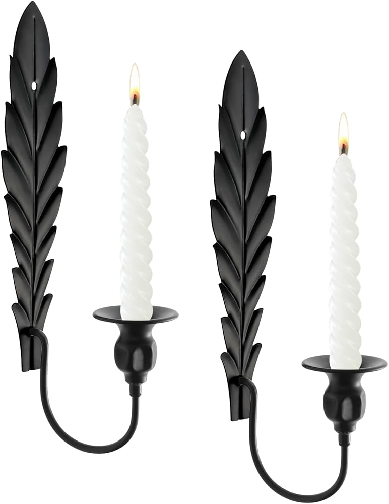 Anndason مجموعة من 2 شمعدان حائط أسود، حامل شموع حائطي فريد من نوعه للديكور، حامل شمعدان حائطي، شمعدانات شمعدان لتزيين الحائط لديكور المنزل، الزفاف، الطعام، الحفلات (أسود)