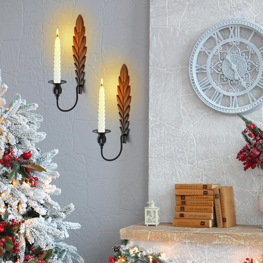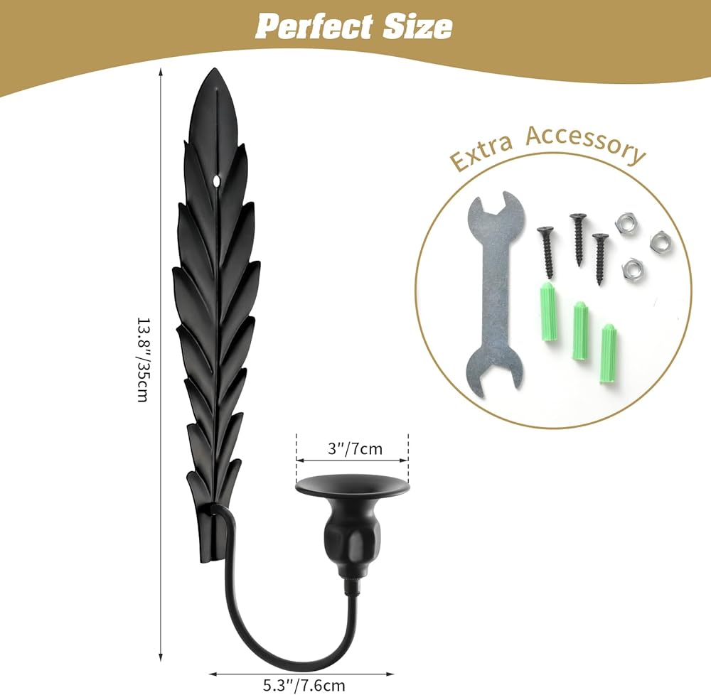 العبوة تشتمل على: قطعتان من حامل شموع الحائط. المقاس 13.8 بوصة × 3 بوصة × 5.3 بوصة (35 سم × 7.6 سم × 13.5 سم). شمعدانات شموع الحائط فقط، الشموع غير متضمنة.