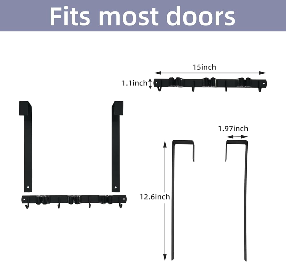 Save space: Over the door broom and mop holder can hide mops, brooms, towels, brushes, etc. behind the door, making full use of the space behind the door and saving room space